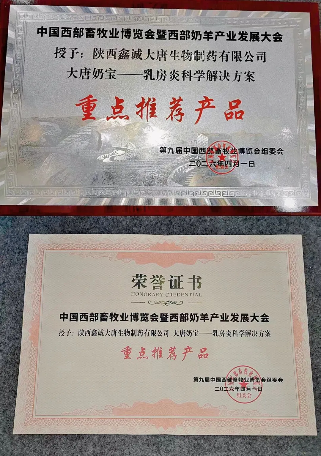 同期,在西部奶羊产业发展大会上,全国著名中兽医专家、公司高级顾问、内蒙古农业大学杨英教授受邀出席奶山羊专场论坛,并围绕中兽药防治奶山羊隐性乳房炎作专题技术分享,系统讲解奶山羊养殖实用疾病防控方案,获得与会嘉宾和养殖户高度认可,我公司奶山羊乳房炎防治产品《大唐奶宝》也被组委会评为作为乳房炎科学解决方案重点推荐产品。