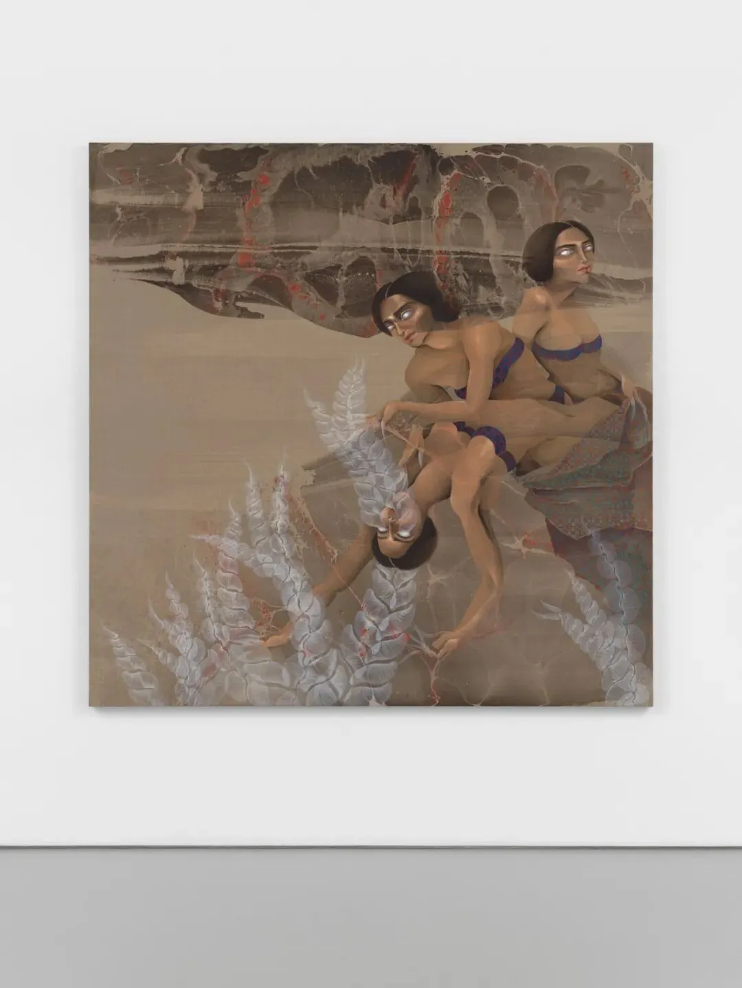 海伊夫·卡赫拉曼的亚麻布油画描绘了处于宁静休憩和令人不安的扭曲姿态中的女性形象。这位伊拉克出生的艺术家热衷于材料探索,她在画布上切割、在亚麻布中融入声学泡沫、在木板上作画、创作雕塑、素描,并编排表演。卡赫拉曼的创作汲取了文艺复兴绘画、波斯细密画、新艺术运动等多种影响,以及她作为伊拉克侨民女性的亲身经历。卡赫拉曼曾就读于佛罗伦萨美术学院和瑞典乌梅奥大学。她的作品曾在纽约、洛杉矶、伦敦、迪拜等地展出。她的作品被多家机构收藏,包括圣地亚哥当代艺术博物馆、北卡罗来纳艺术博物馆、鲁贝尔家族收藏、沙迦巴杰尔艺术基金会和多哈马塔夫阿拉伯现代艺术博物馆。