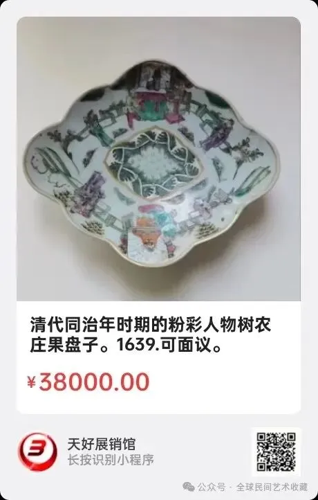 清代同治年时期的粉彩人物树农庄果盘子。直径,28cm,宽23cm,底座,7cm,可面议。来源1639.V.