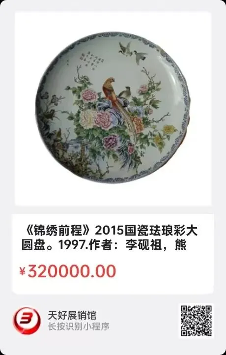 《锦绣前程》2015国瓷珐琅彩大圆盘。尺寸:直径:56厘米,盘深:10厘米。作者:李砚祖,熊建军。来源1997.V。