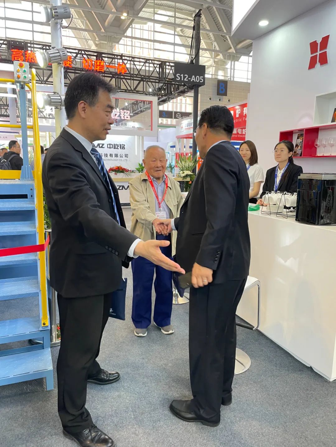致恒展位也迎来了一大批新的观众,不少行业内的专家和学者都驻足致恒展台,其中包括96岁铸造行业泰斗李教授,中国铸造协会教培部副部长景立文等。致恒总裁任玉宝与各位专家们展开了交流与讨论,针对当前行业的发展趋势和前景,分享了在铸造领域的深刻见解和经验。