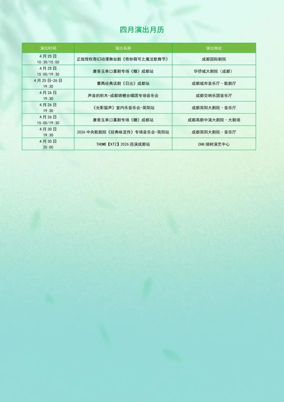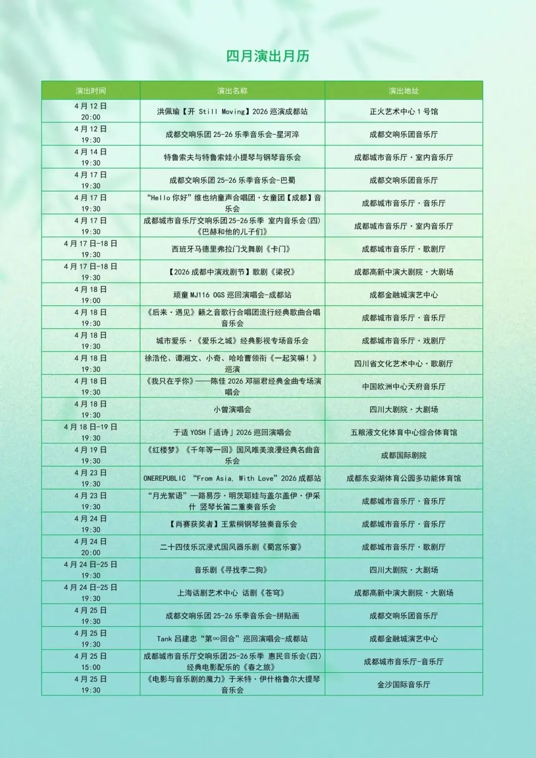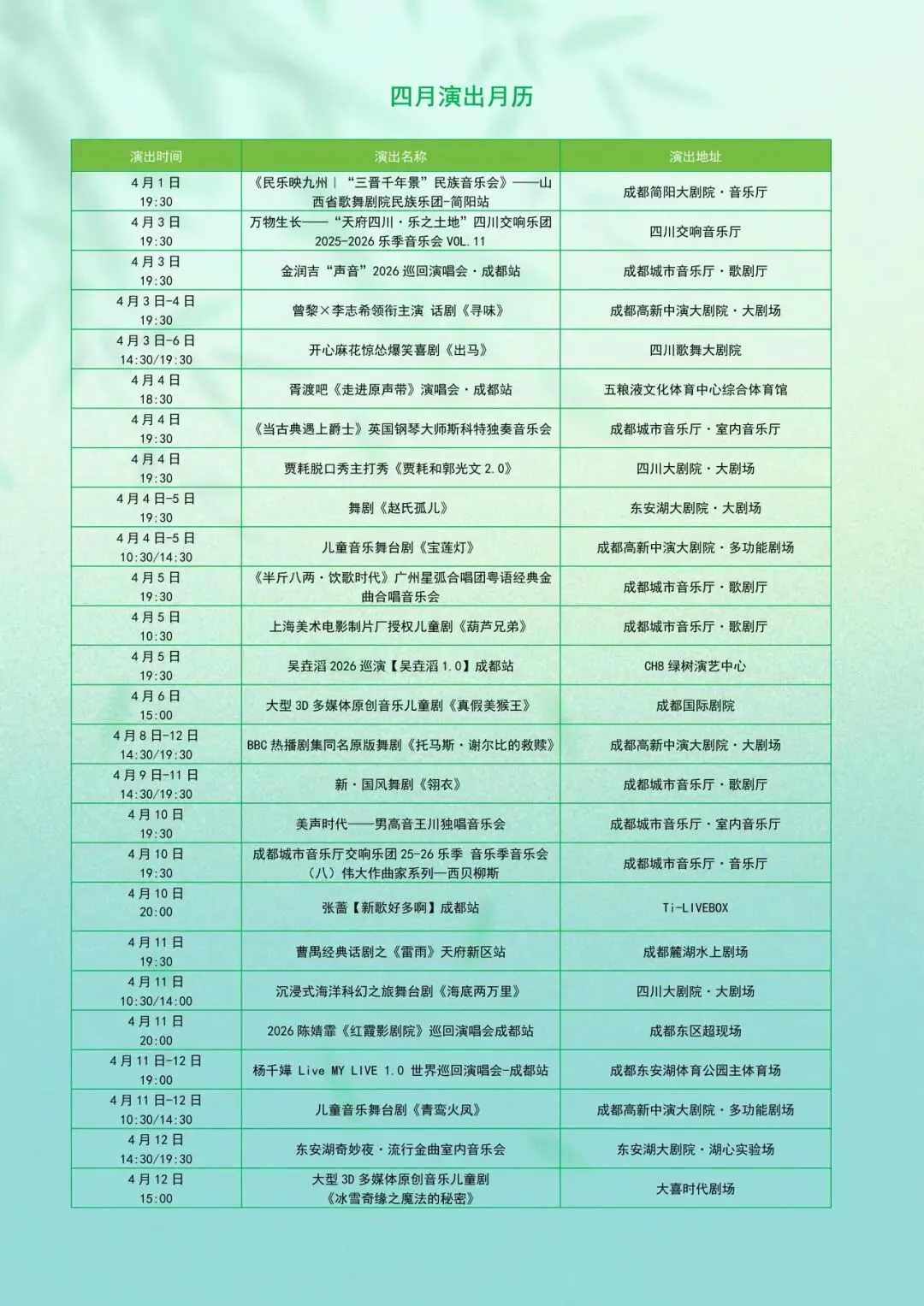 收好这份成都「4月演出月历」