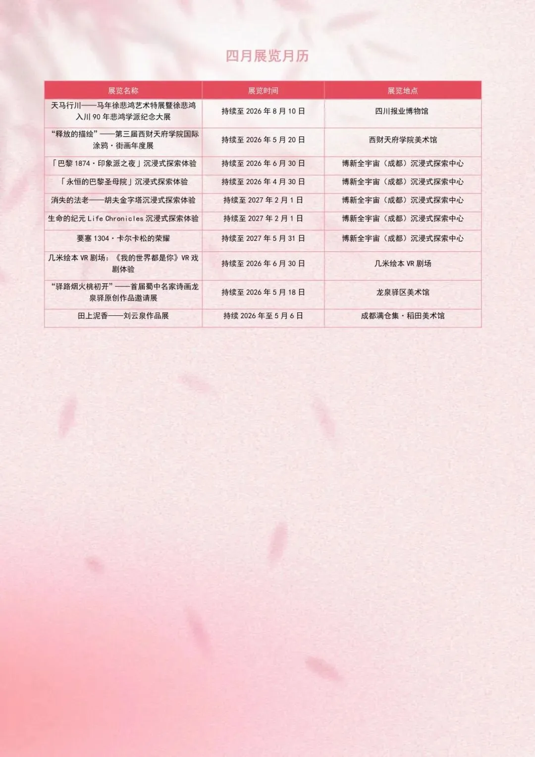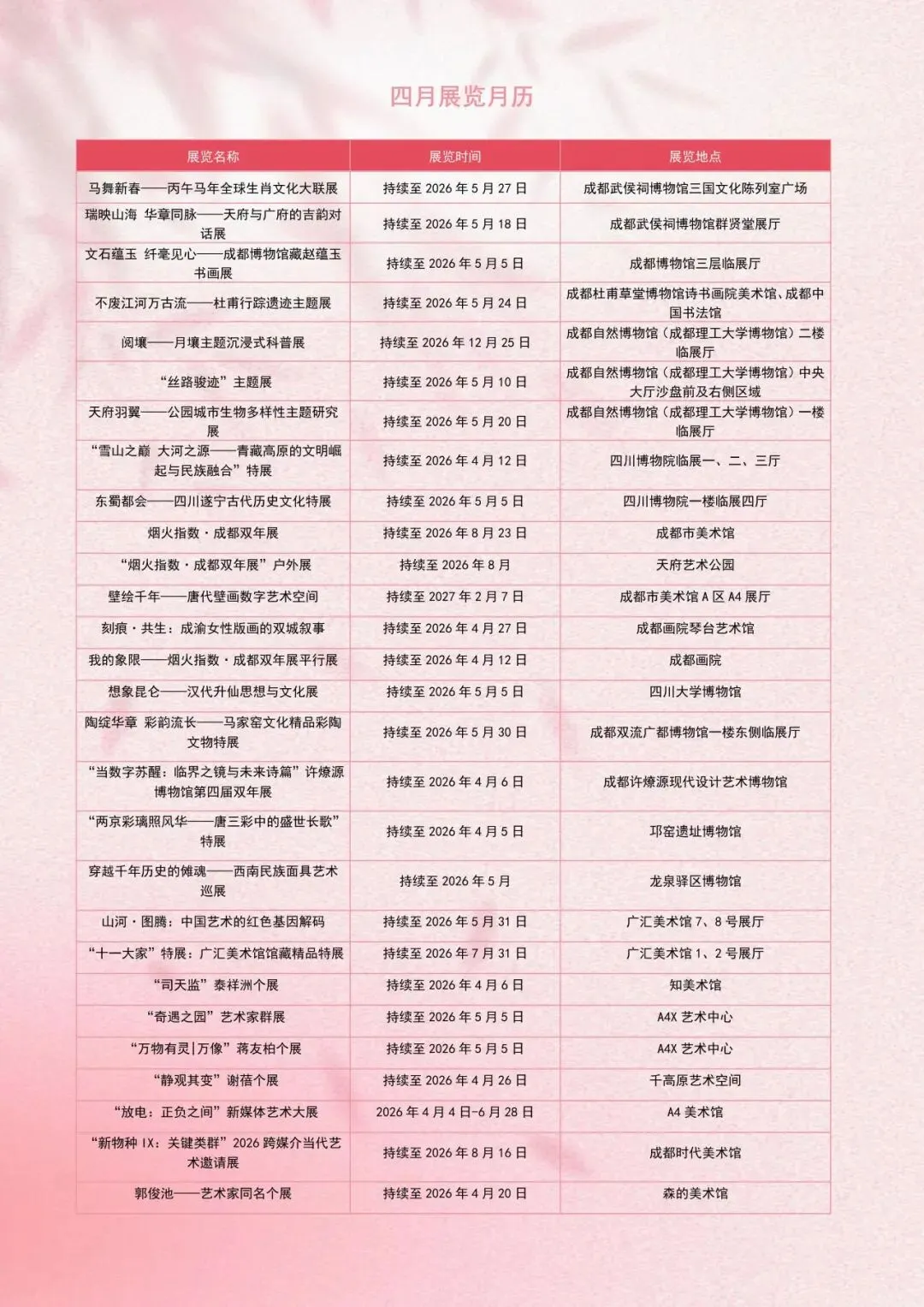 成都「4月展览月历」如约而至