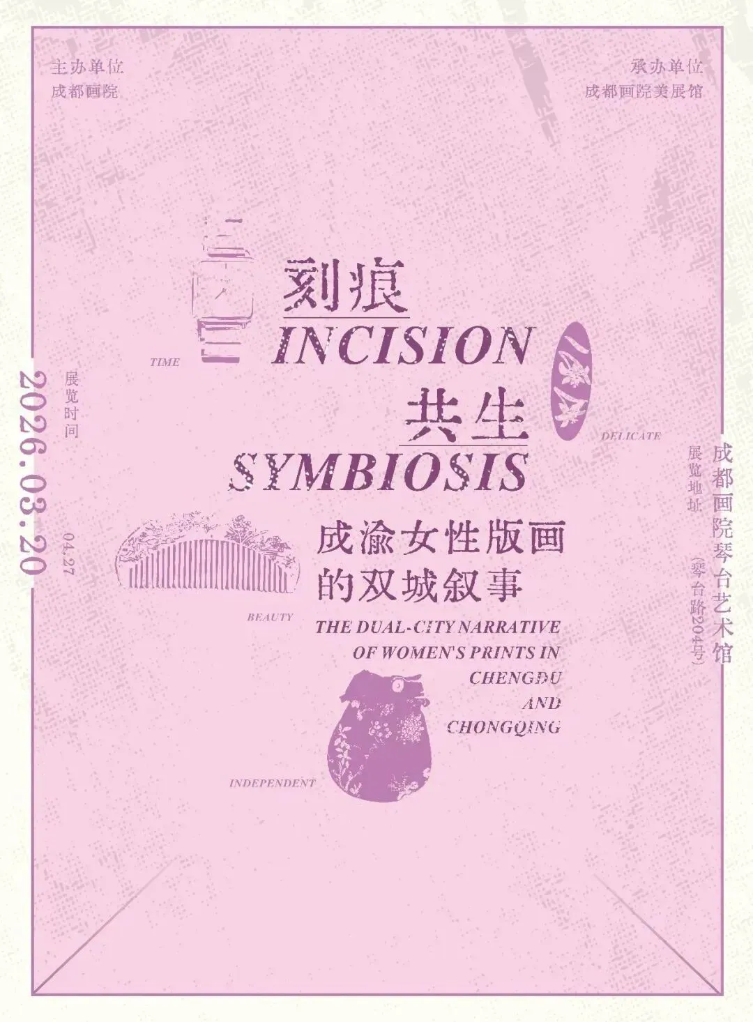 丨介绍丨此次展览汇聚成渝两地二十四位女性版画艺术家的作品,以“刻痕·共生”为名,探寻她们如何在版画的媒介中,刻下属于自己的精神轨迹。在刀与版的碰撞中,地域根脉与时代叙事交融;在印与纸的相融里,女性视角与版画语言共生。