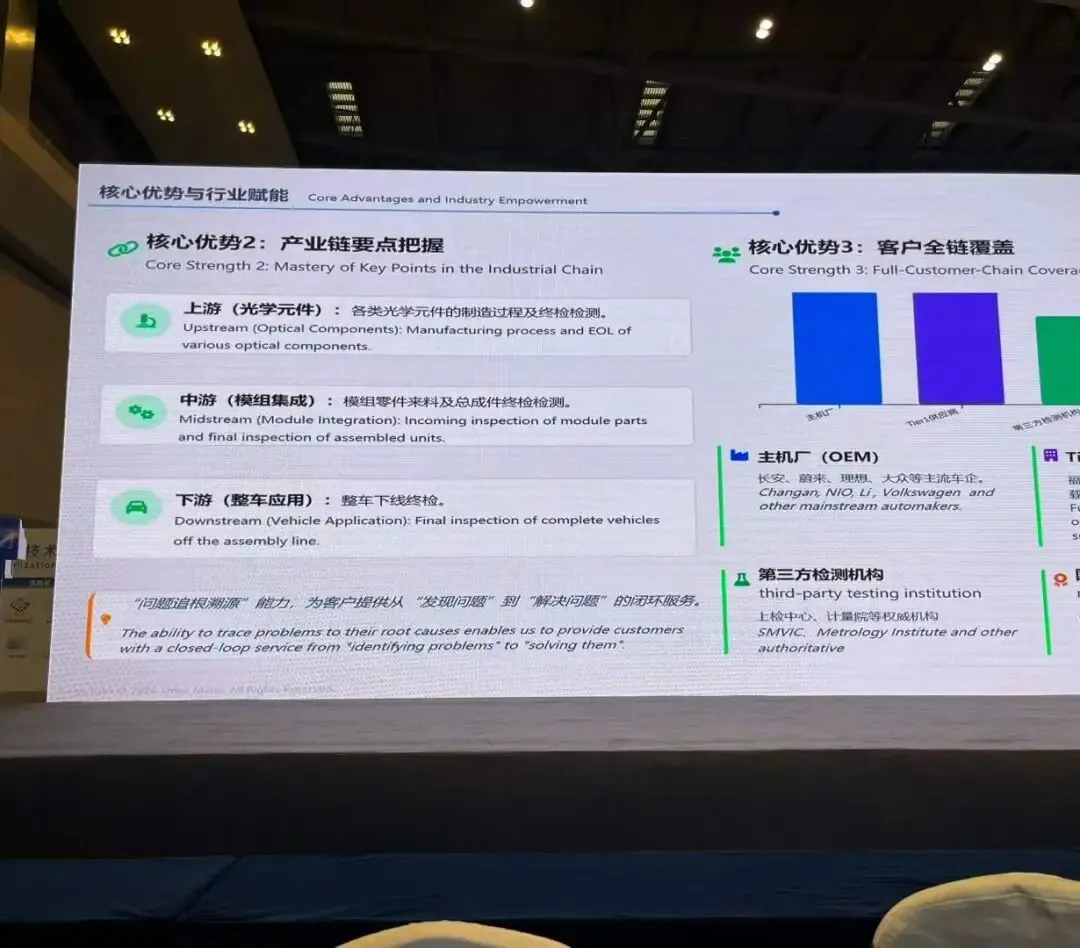 本次展会,公司总工程师崔庆炎就《车载光显示系统的光性能精准检测技术研究与关键分析》发表演讲,围绕HUD、光场屏、智能车灯、车载摄像头等多类车载光系统,分享了行业痛点、全链路检测方案与实测案例,展现了思瑞斯在车载光学检测领域的技术沉淀与行业价值。