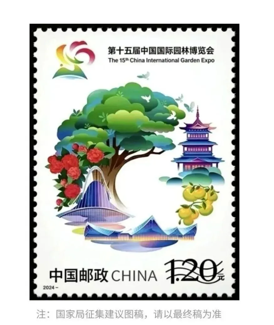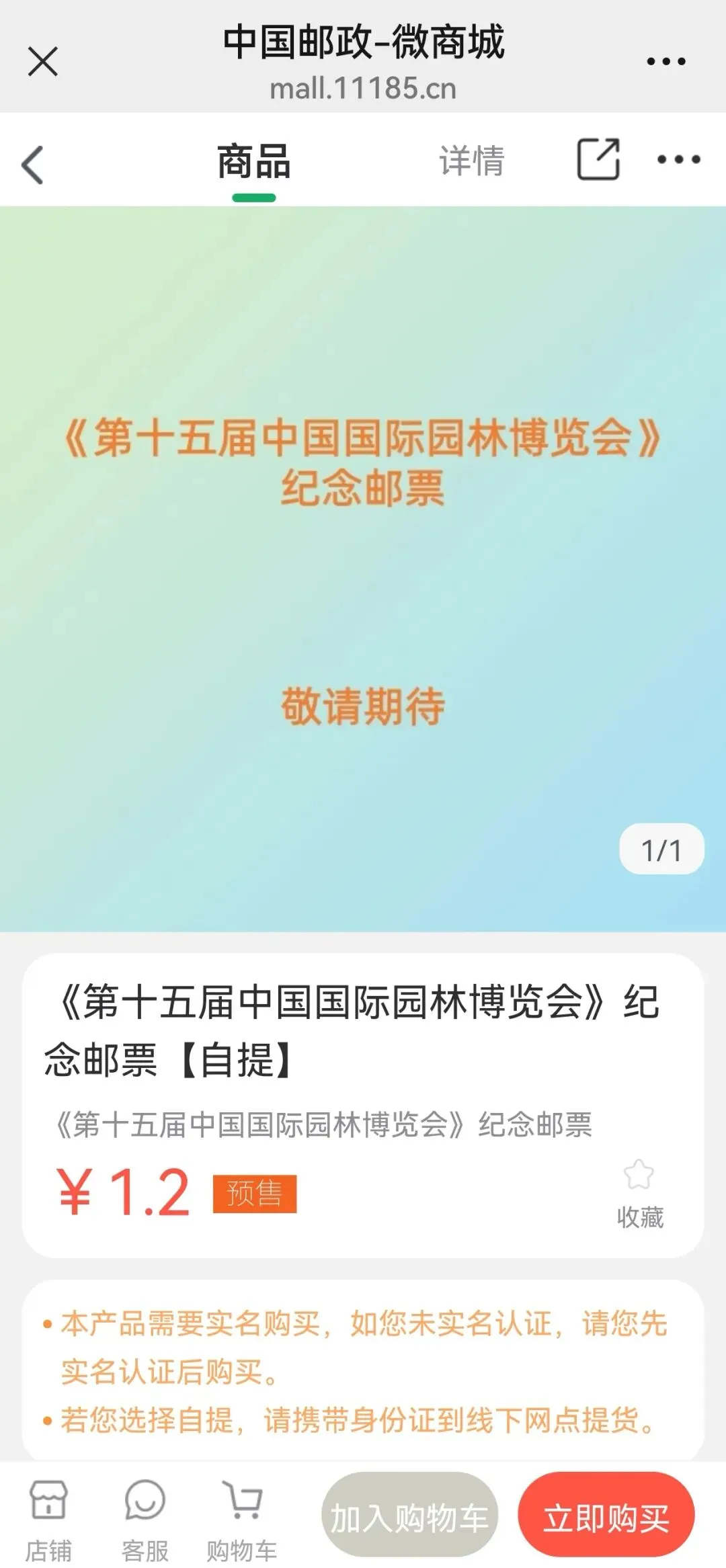 本次发行的《第十五届中国国际园林博览会》邮票为正式纪特邮票,一套1枚,面值1.20元,整版12枚,总面值14.4元。邮票规格33×44毫米,齿孔度数13.5度,由王子源、夏竞秋设计,胶版印制。网厅自提可通过中国集邮网厅或公众号菜单【邮票预约】、【新邮入口】进入预约购买。