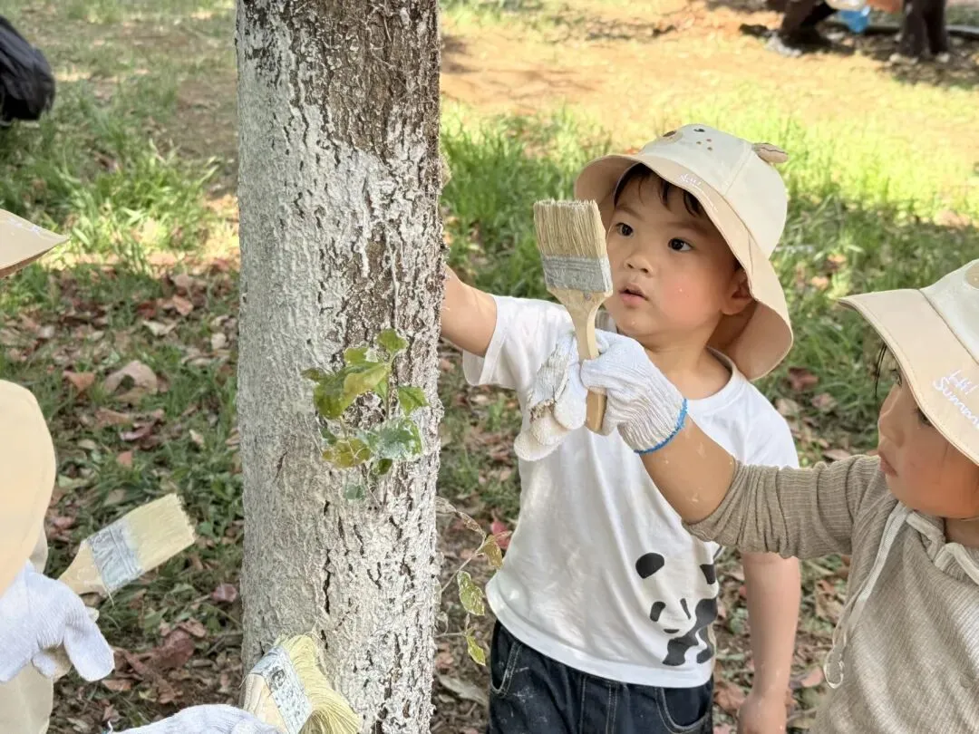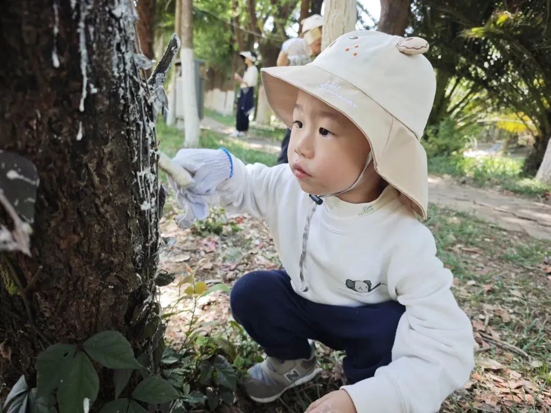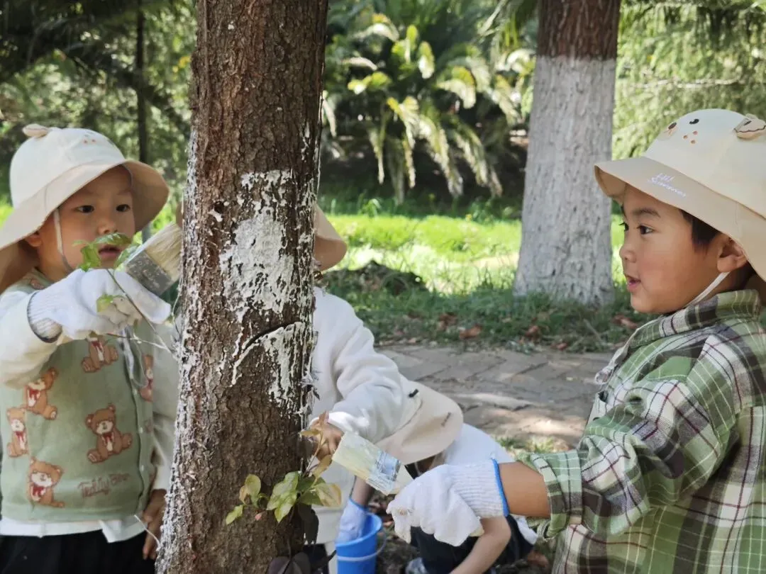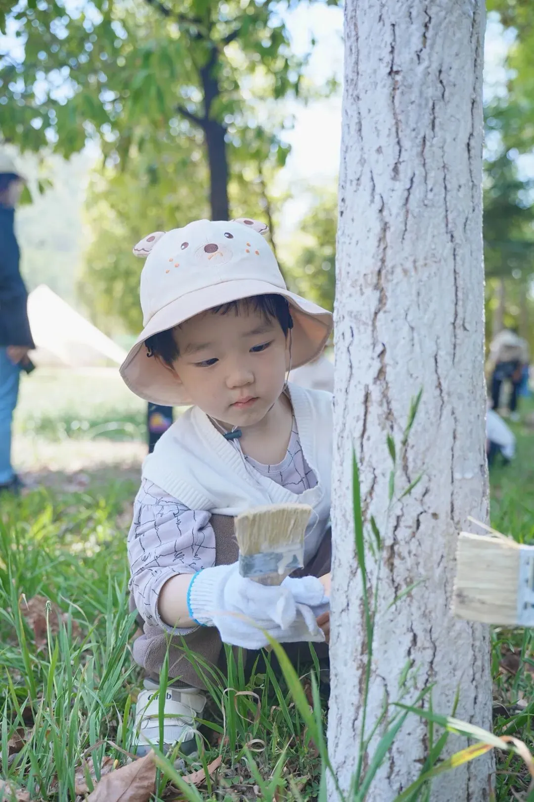 学习树木养护知识,为树木刷白防虫,感知生命的周期与脆弱;熊大熊二惊喜现身,与孩子们击掌拥抱,在互动中传递守护自然的温暖理念。
