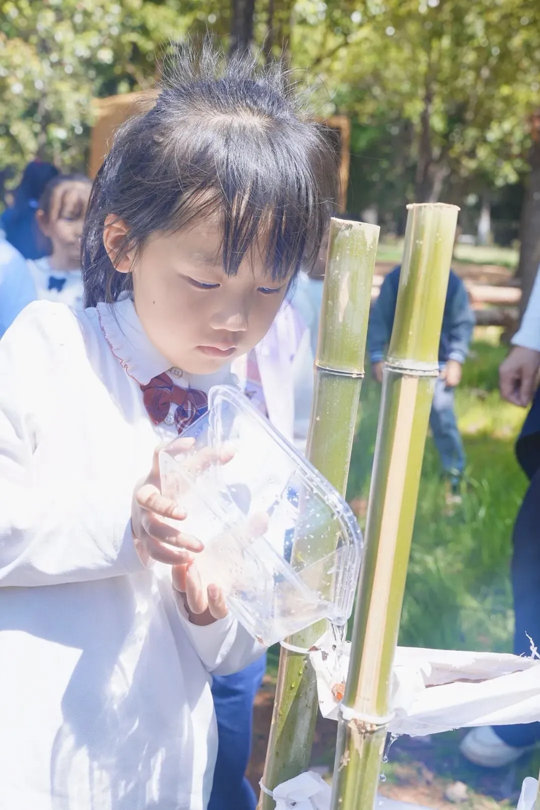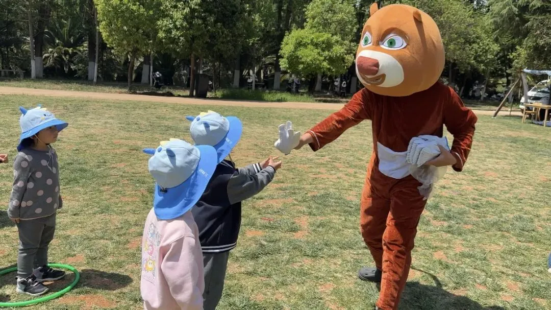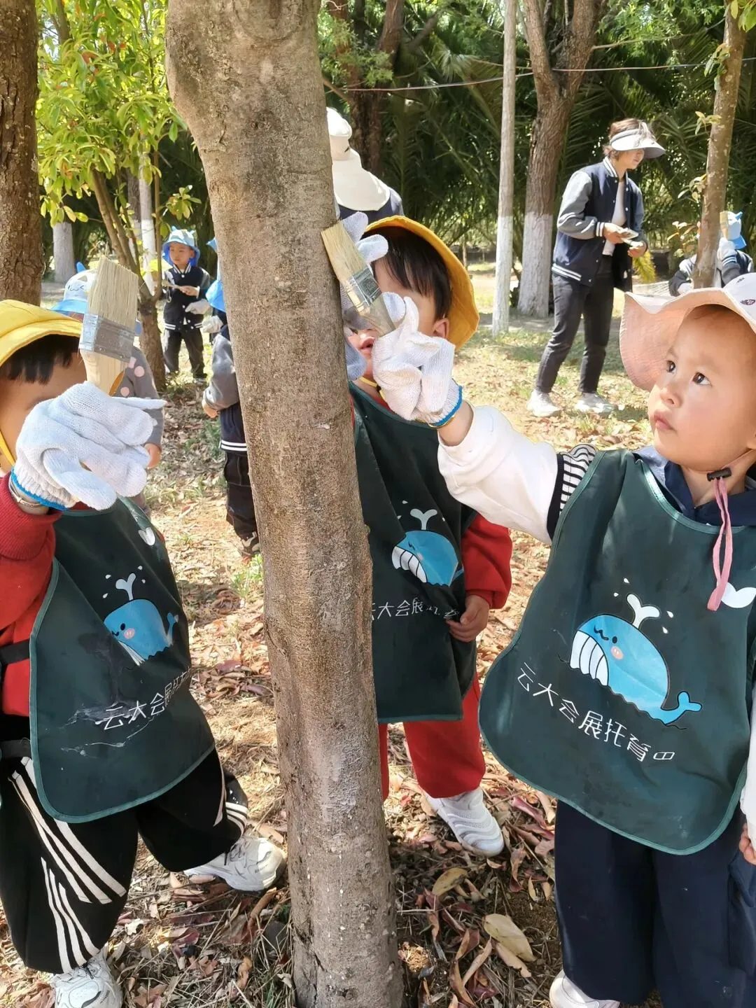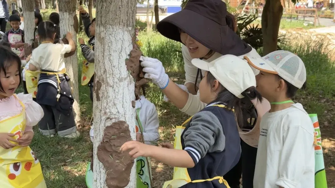 学习树木养护知识,为树木刷白防虫,感知生命的周期与脆弱;熊大熊二惊喜现身,与孩子们击掌拥抱,在互动中传递守护自然的温暖理念。