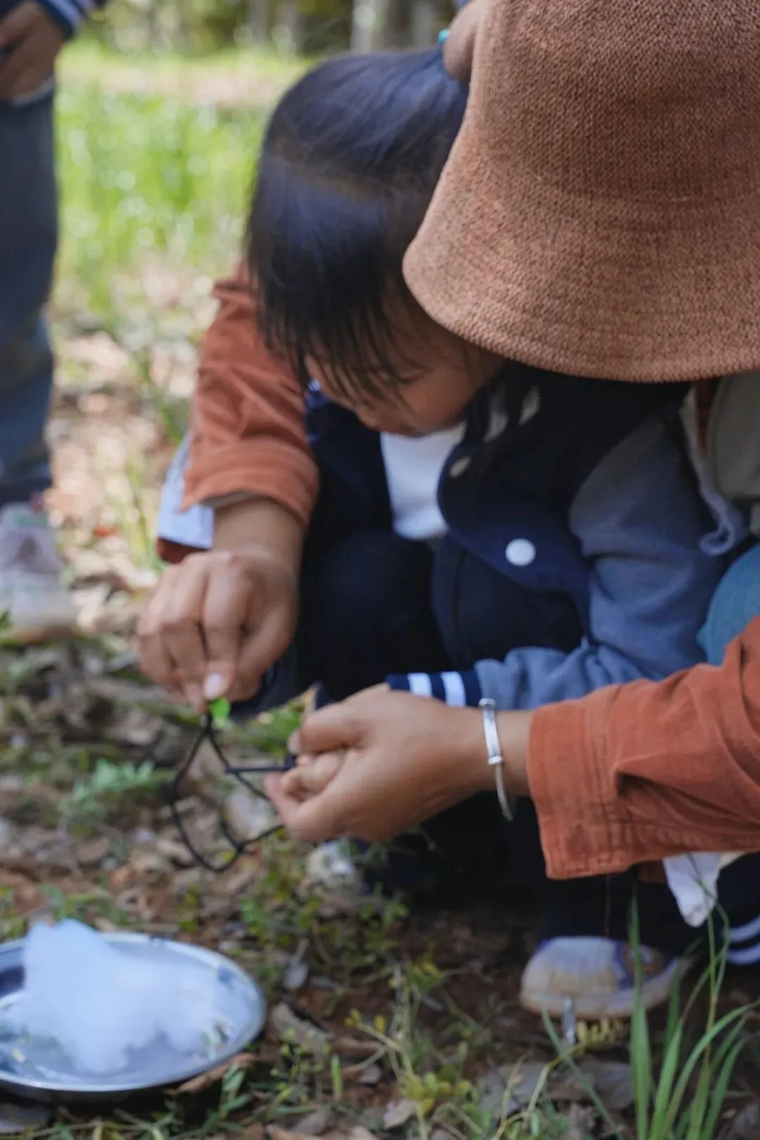 以森林为舞台,用沙子、水、石子等自然材料创作乐曲,感知不同音色与节奏,在合作中强化团队精神,激发音乐兴趣。