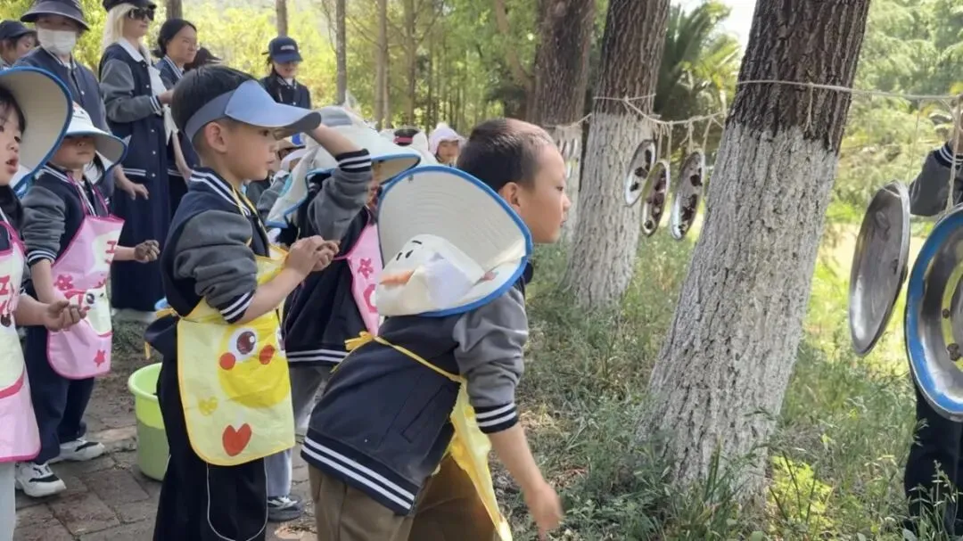 制作泥巴炸弹,在尽情驰骋中感知身体的力量;用泥巴投掷不同材质的锅盆,聆听多样声音,直观感受声音的物理特性,释放户外撒野的快乐。