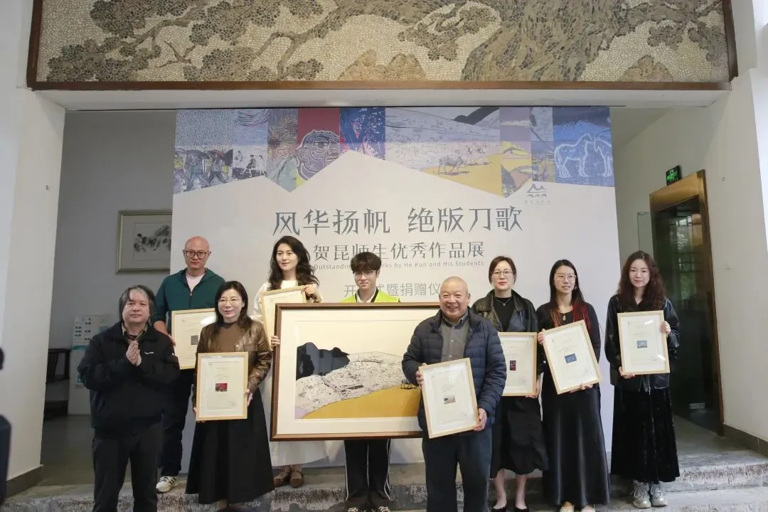开幕现场举行了作品捐赠仪式,贺昆师生向桂林美术馆捐赠部分作品,用实际行动支持公共美术馆建设与艺术资源共享。馆方表示,此次捐赠不仅丰富了馆藏体系,也为广西版画研究与展示提供了重要的学术与实践样本,具有积极而深远的意义。