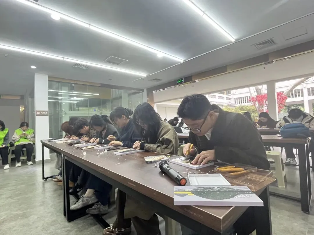 当天下午,展览同步推出现场导览与绝版木刻体验活动,由贺昆及其团队结合展出作品进行分享与讲解,带领观众在观看与体验中理解创作方法与艺术语言,增强了展览的互动性与参与感。参加活动的大学生和观众纷纷表示:能在桂林体验到云南艺术的独特魅力,足不出桂便可邂逅民族风情,对本次活动留下了深刻而美好的记忆。