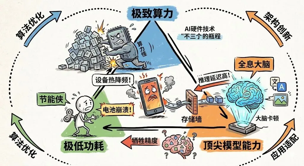 顶尖模型能力:高精度模型对算力和存储要求极高,难以在移动端普及;而过度轻量化的模型往往会牺牲“智商”。