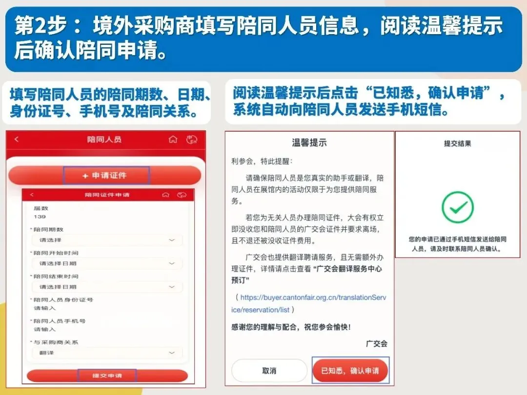 新采购商先进行本人参会预登记,完成境外采购商证申请后,申请陪同。