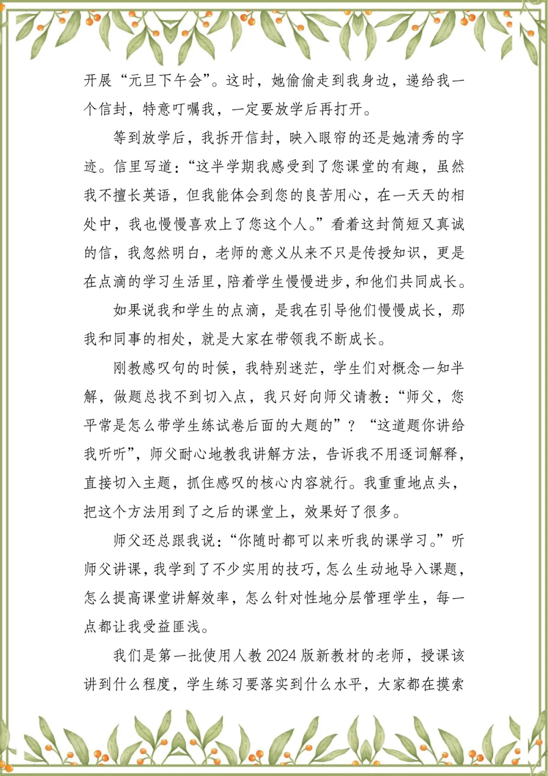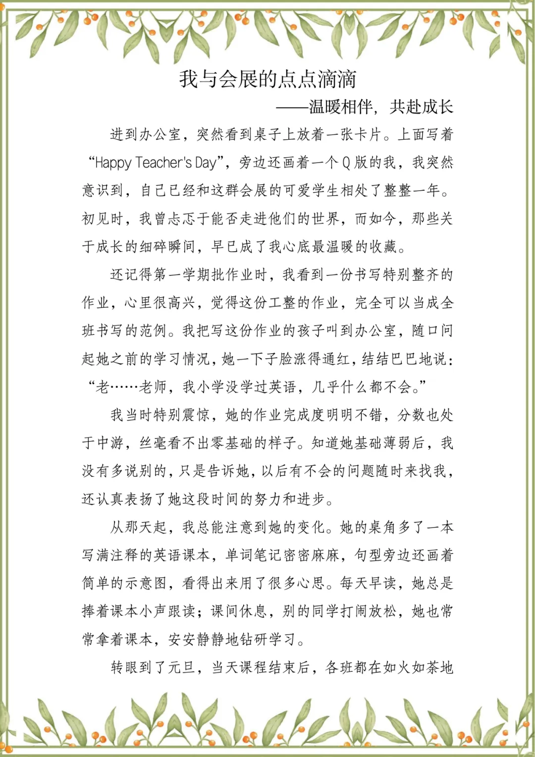 三位老师的故事,让我们看到了教育最本真的模样——它不在宏大的口号里,而在日复一日的陪伴与坚守中。无论是英语零基础学生的悄然进步,还是体育课堂上自信之火的点燃,亦或是教室里那些温柔而智慧的引导,都印证着一个朴素的真理:教育是一场温暖的遇见,更是一次彼此的照亮。老师们用耐心守护每一颗种子的生长,用智慧化解每一次成长的困惑,而孩子们也用努力与信任回馈着这份深情。愿我们都能在这样的故事里汲取力量,不忘教育初心,继续在平凡的岗位上,做那个点亮星光的人。