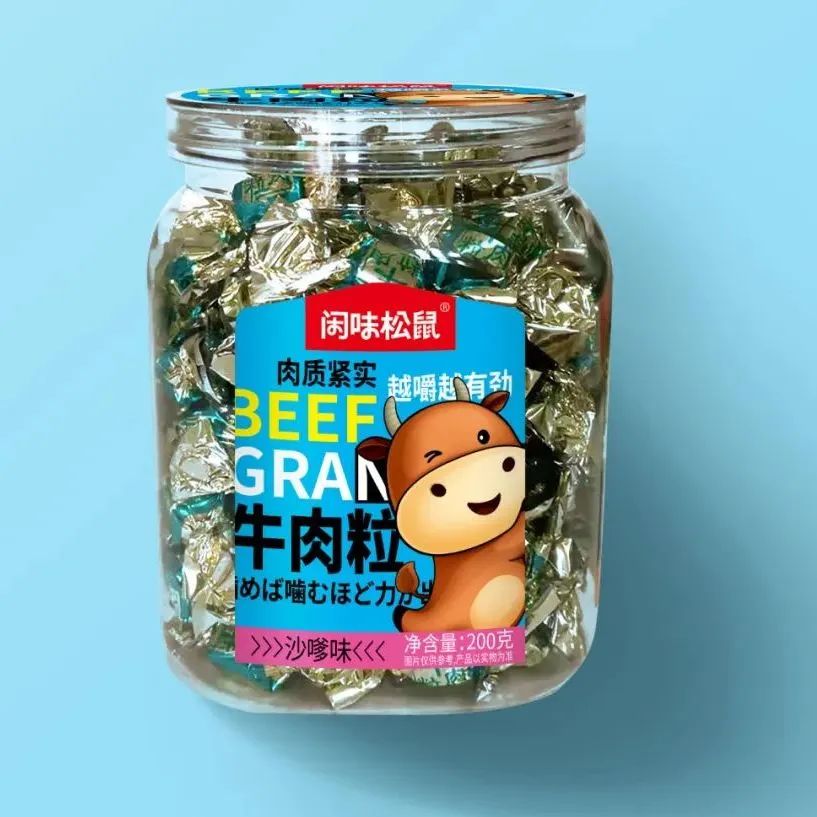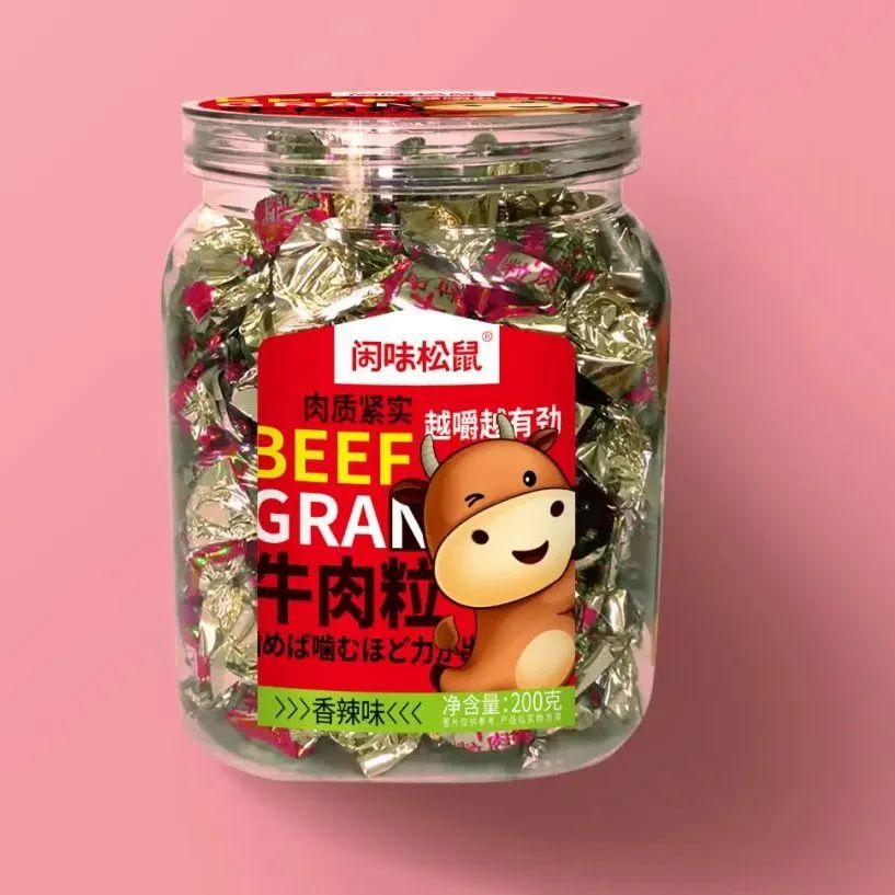 产品介绍:2023年春季堆头爆品~闲味松鼠牛肉粒~非常精准的源头爆品,超美罐形,200克超大罐装牛肉粒,到岸价6块多,零售价12.8,特价9. 9。