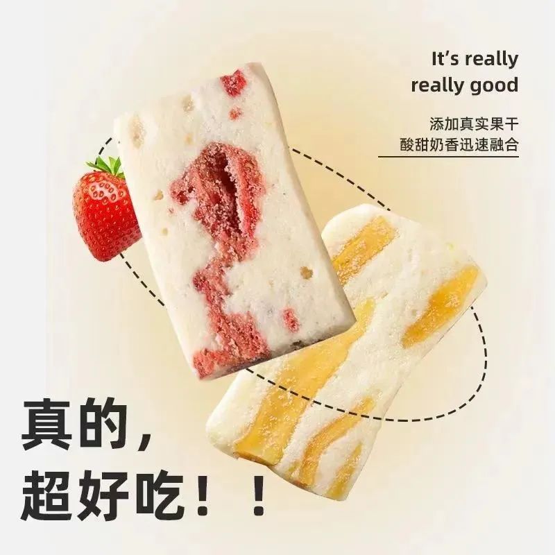 产品介绍:纯奶粉制作,加上冻干水果,更有营养价值。