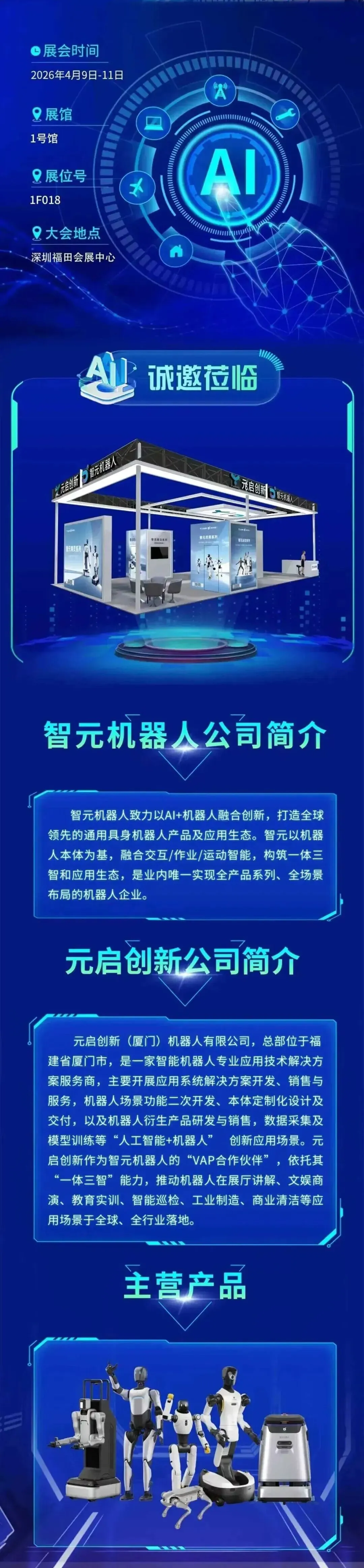 作为国内顶尖、亚洲领先的电子信息产业盛会之一,CITE2026 展会现场可谓是亮点纷呈,届时将汇聚全球优质企业与前沿科技,集中呈现 AI 算力、集成电路、人形机器人、新型显示、低空经济等热点领域。其中最让人期待的莫过于智元机器人与元启创新机器人将联袂亮相1号馆1F018展台。