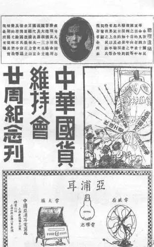 上海中华国货维持会等商人团体,通电赞成孙中山取消不平等条约的主张,并敦促北京政府临时执政段祺瑞“与中山先生协力合作,期底于成”。图为《中华国货维持会廿周年纪念刊》。