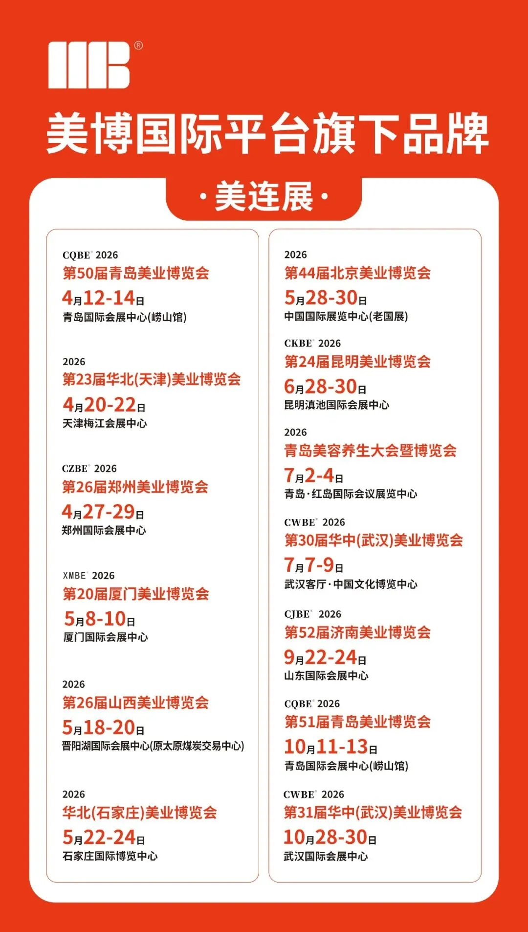 美业好博览,就选美连展!23年深耕西南,只为成就您的生意增长。2026年6月28–30日,春城昆明,不见不散!