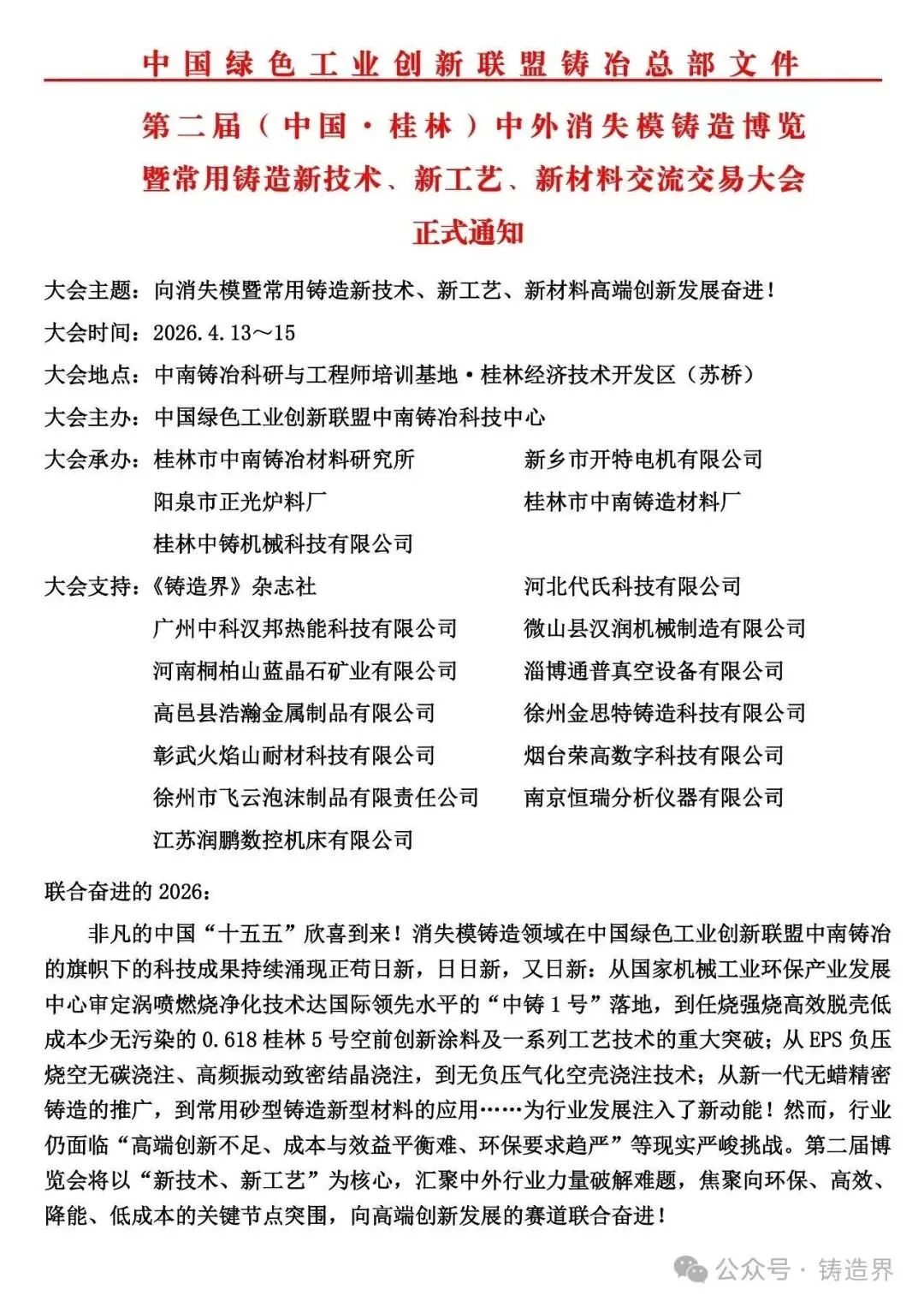 第二届(中国桂林)中外消失模铸造博览会4.13—15