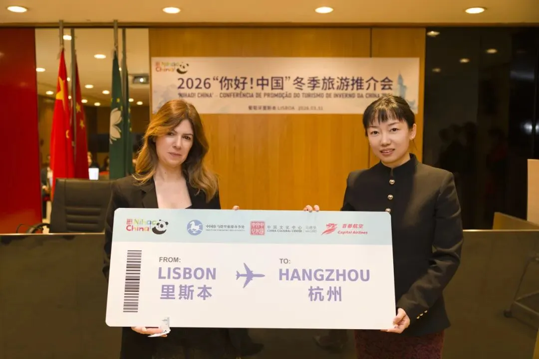 3月31日,2026“你好!中国”冬季旅游推介会在葡萄牙首都里斯本成功举办。本次活动由中国驻马德里旅游办事处和马德里中国文化中心主办,中国驻葡萄牙使馆文化参赞甘萍、马德里中国文化中心副主任许婷婷、澳门驻里斯本经济贸易办事处主任加沛儿、中国银行里斯本分行行长郭志垚,以及葡萄牙旅游业界、学术界、文化艺术界及媒体代表等五十余人出席活动。
