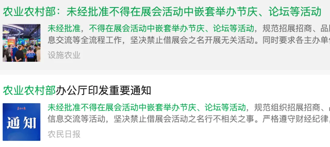 第二惊:2023年,商务部就说要把重大展会变为城市盛会,展会就是要跟节庆、会展、论坛放在一起,发挥展会职能,各地都在积极探索文商旅融合创新,政府部门作了很多推动,很多地方效果还不错~ 农业农村部突然叫停“展+会+节”,这是要吹什么风??