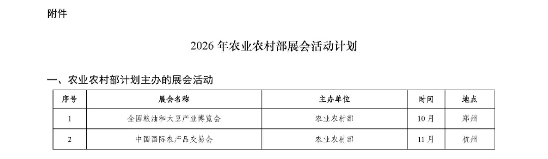 点击文末“阅读原文”,查看《关于印发〈2026 年农业农村部展会活动计划〉的通知》全文。