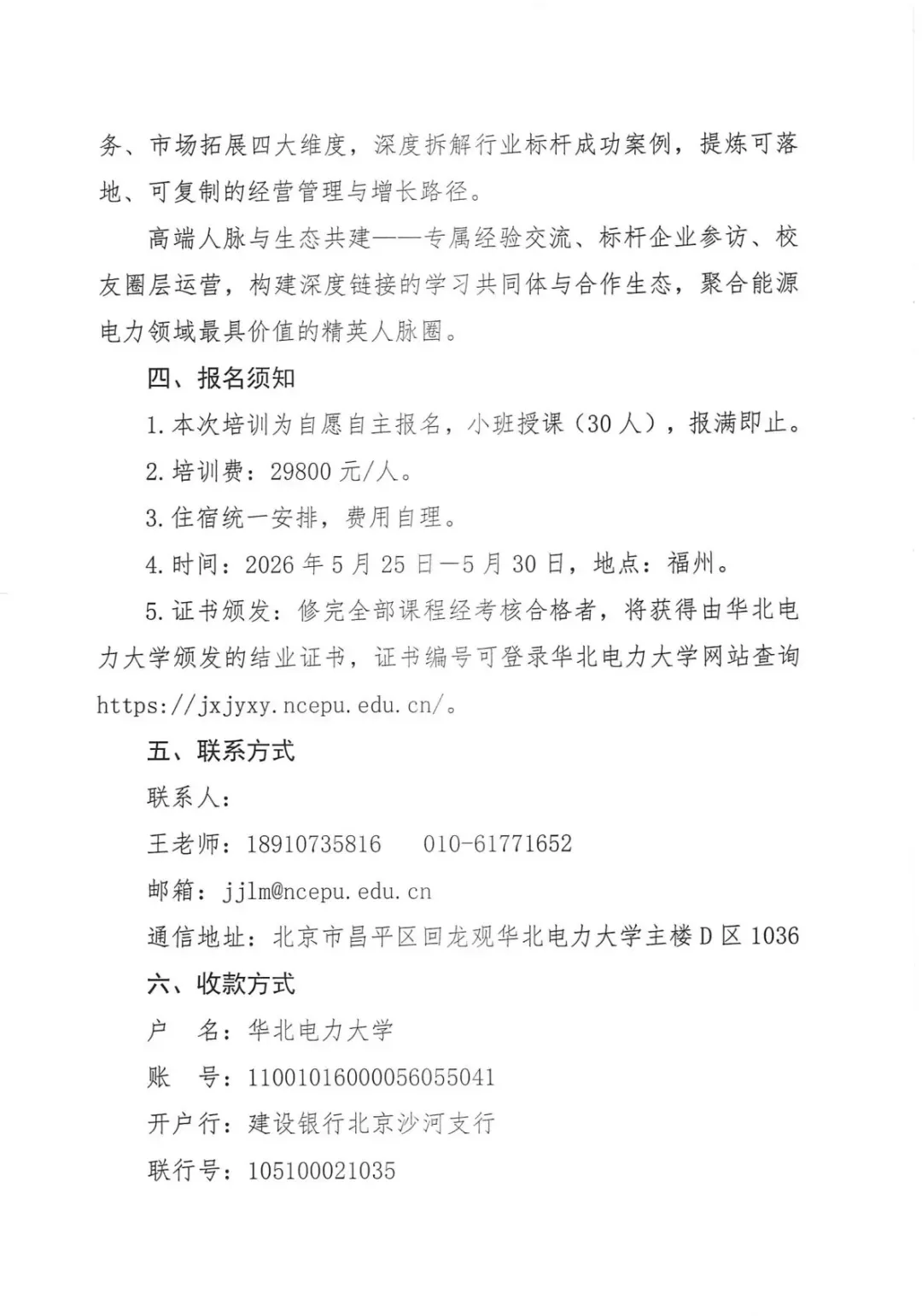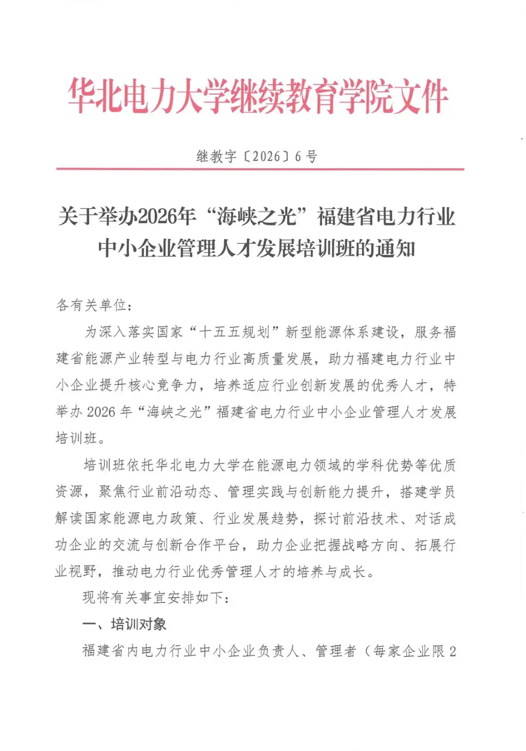 关于举办2026年“海峡之光”福建省电力行业中小企业管理人才发展培训班的通知
