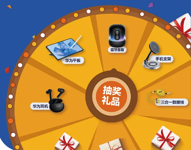 重磅奖品包括:华为平板电脑、华为无线耳机、高品质蓝牙音箱、手机支架等。