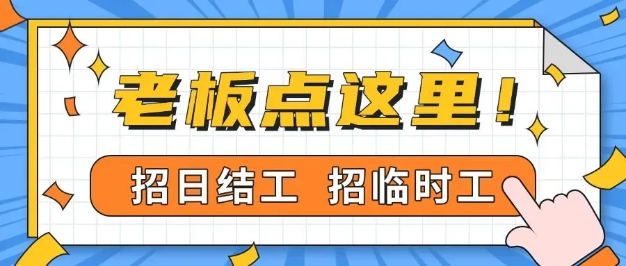 点击上方图片,进入招工小程序,查看附近日结临时工岗位招工信息,岗位真实、工价靠谱,一键联系老板,线上接单,线下干活,工资日结!