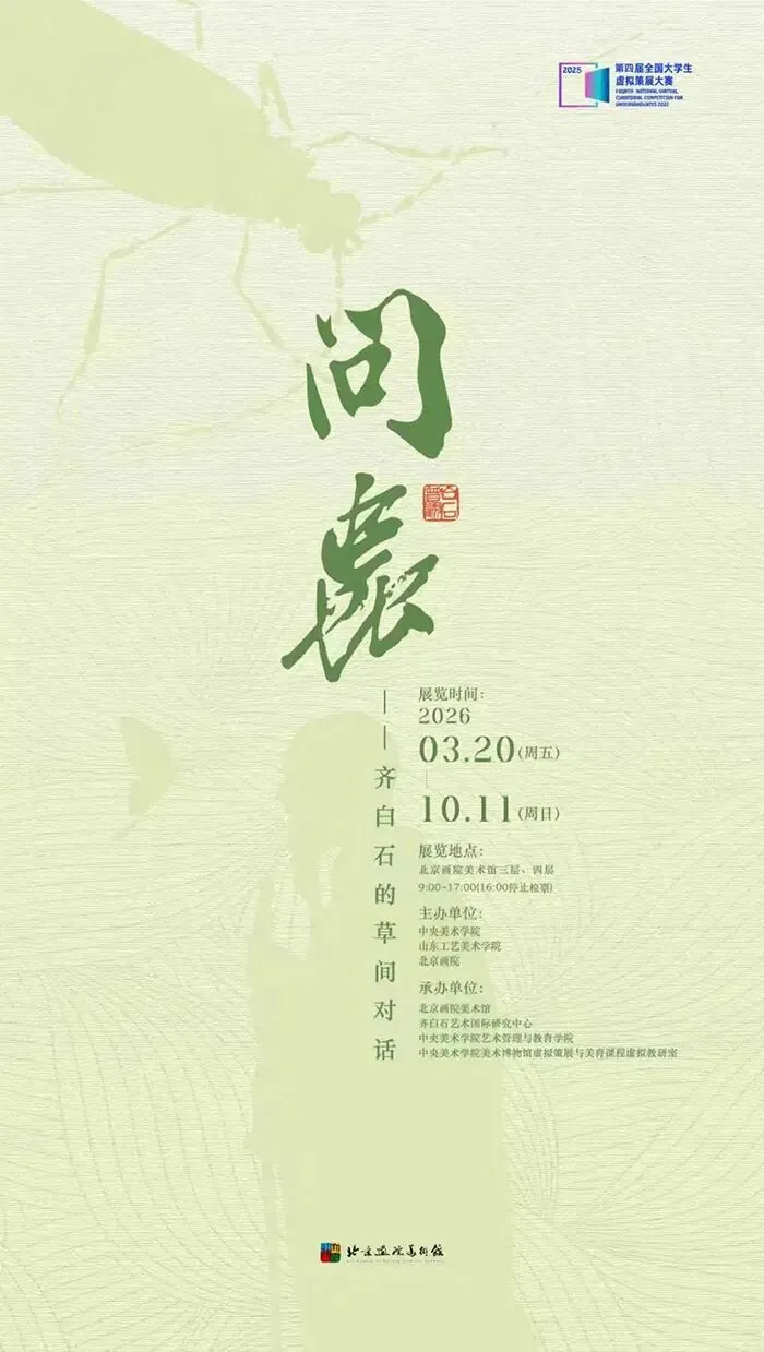 展览第一次全品类展出齐白石的草虫题材绘画,并置呈现昆虫标本与图鉴,探究齐白石作品中的自然观察与人文情怀。