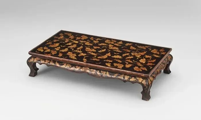 黑漆描金花卉蝴蝶纹长方形矮桌,元-明,旧金山亚洲艺术博物馆藏