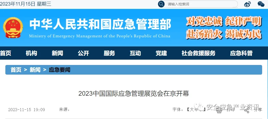央视新闻:2023中国国际应急管理展览会11月15日在京开幕