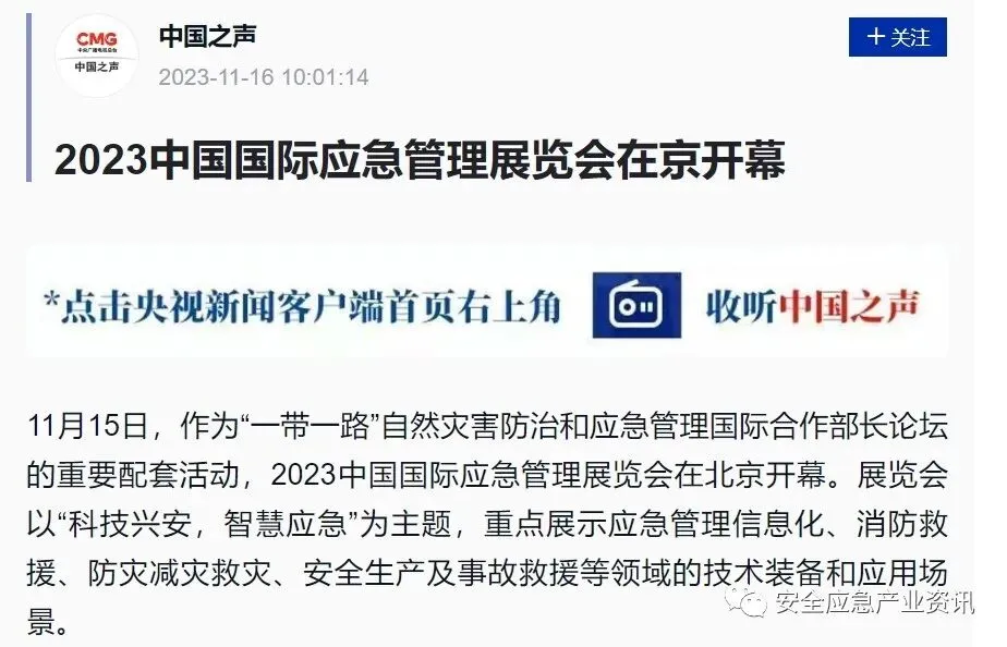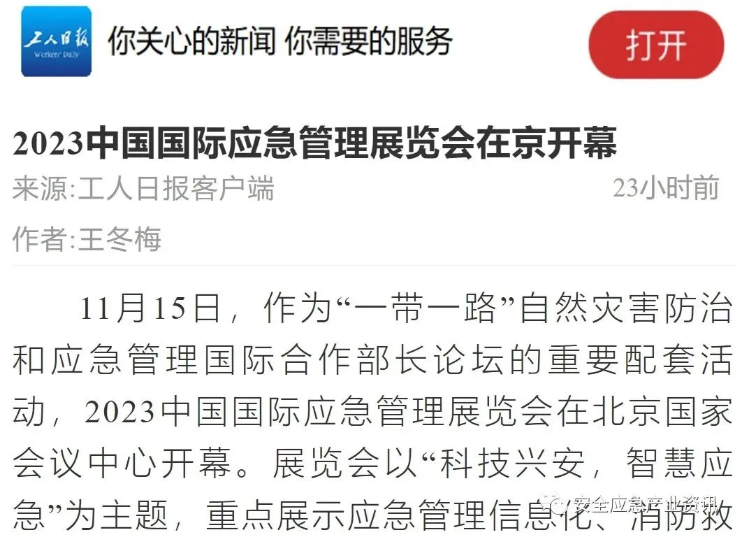 2023中国国际应急管理展览会简介2023中国国际应急管理展览会(以下简称2023中国应急展)为应急管理部“一带一路”自然灾害防治和应急管理国际合作部长论坛的重要配套活动之一,由应急管理部国际交流合作中心主办,将于11月15-17日在北京国家会议中心举办。