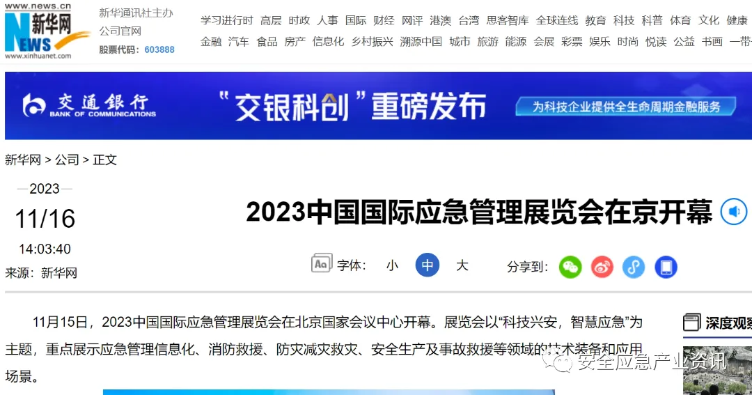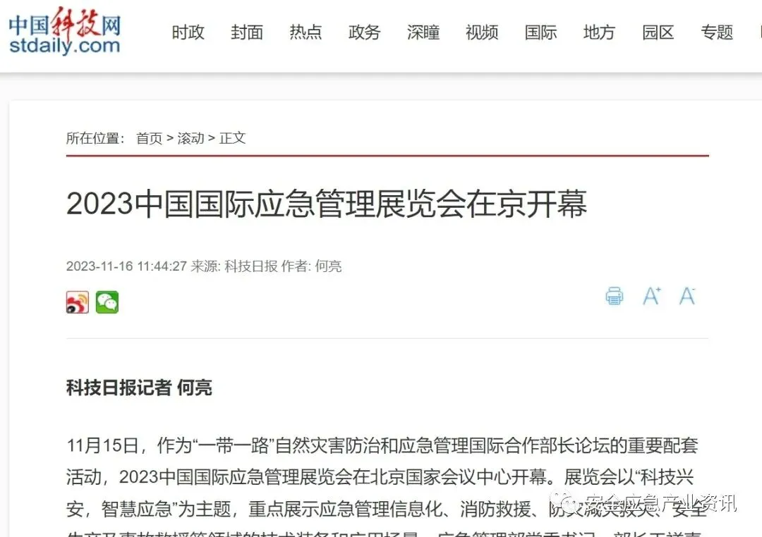 11月15-17日,作为“一带一路”自然灾害防治和应急管理国际合作部长论坛的重要配套活动,2023中国国际应急管理展览会在北京国家会议中心举办。展览会以“科技兴安,智慧应急”为主题,重点展示应急管理信息化、消防救援、防灾减灾救灾、安全生产及事故救援等领域的技术装备和应用场景。