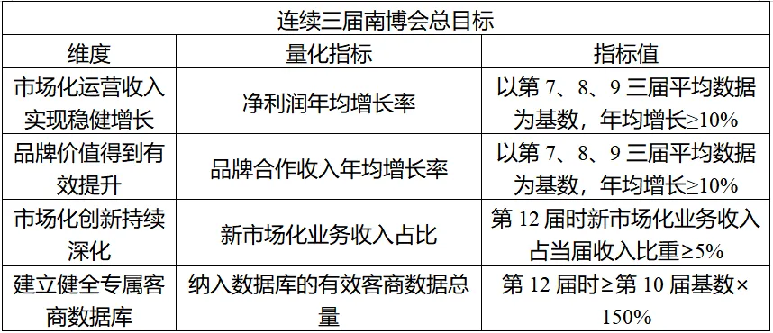 运营方需承诺在连续三届南博会结束后,实现以下核心绩效目标: