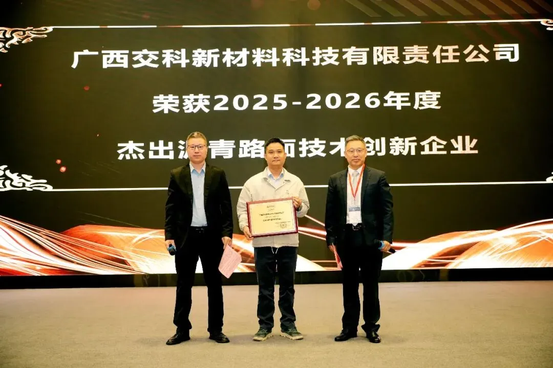 广西交科新材料科技有限责任公司荣获2025-2026年度杰出沥青路面技术创新企业