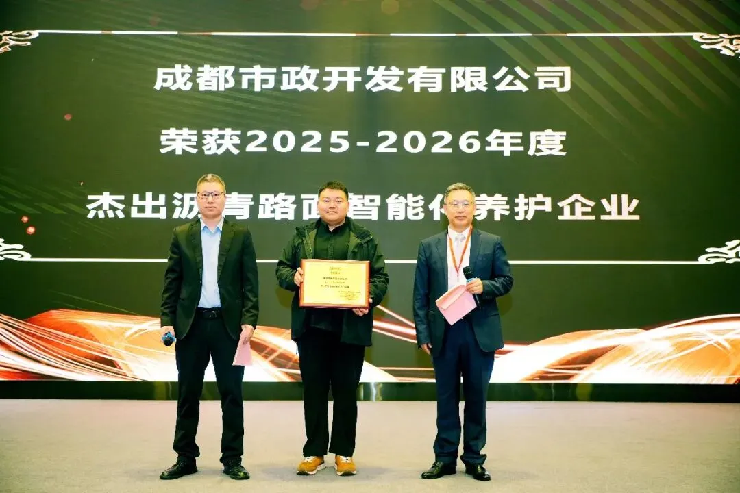 成都市政开发有限公司荣获2025-2026年度杰出沥青路面智能化养护企业