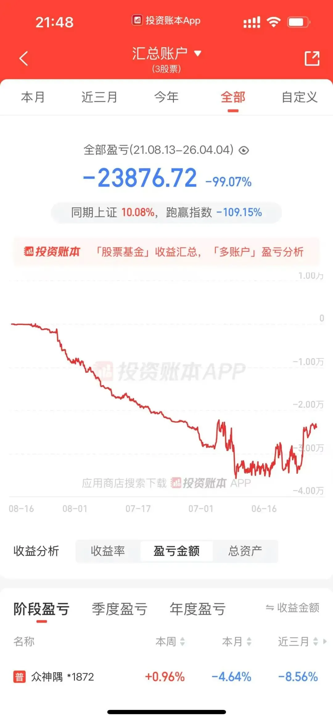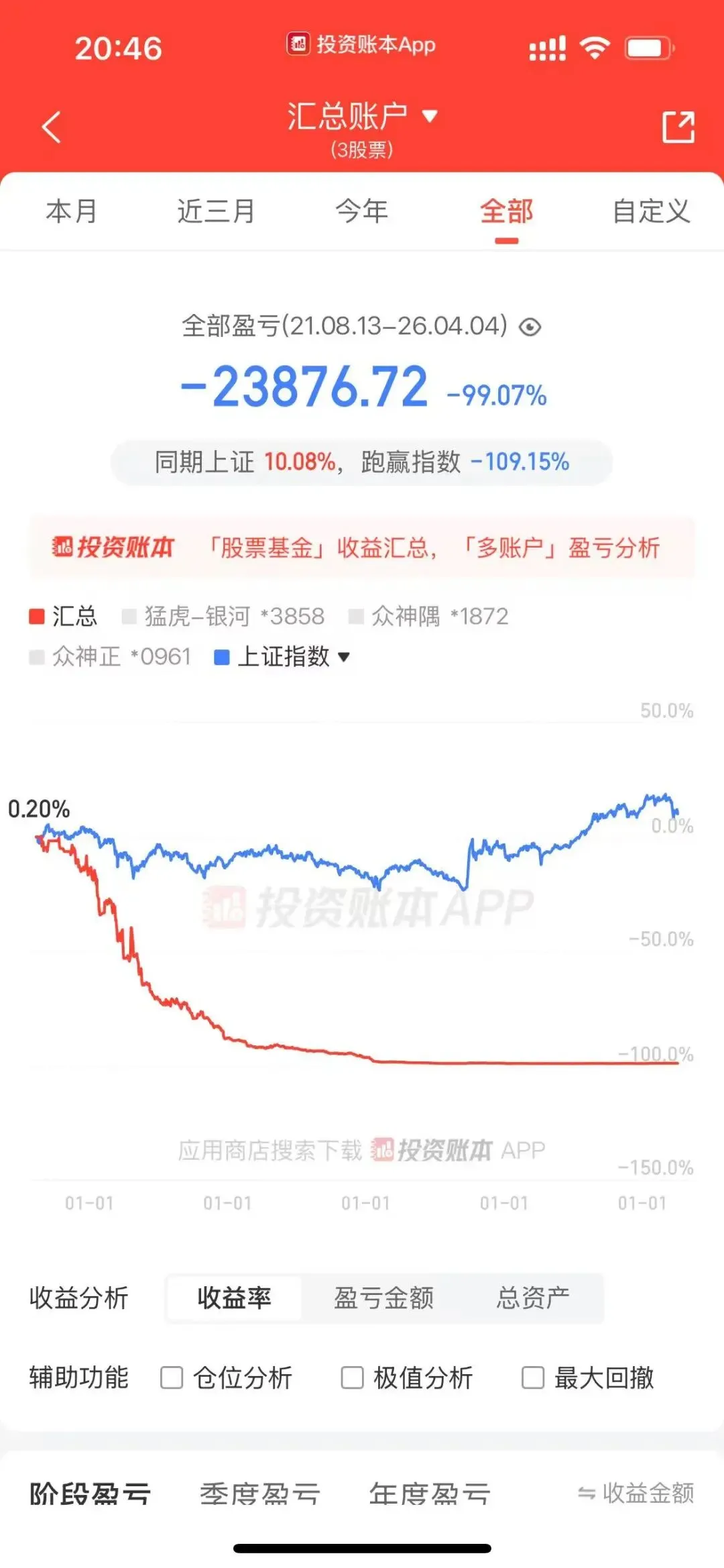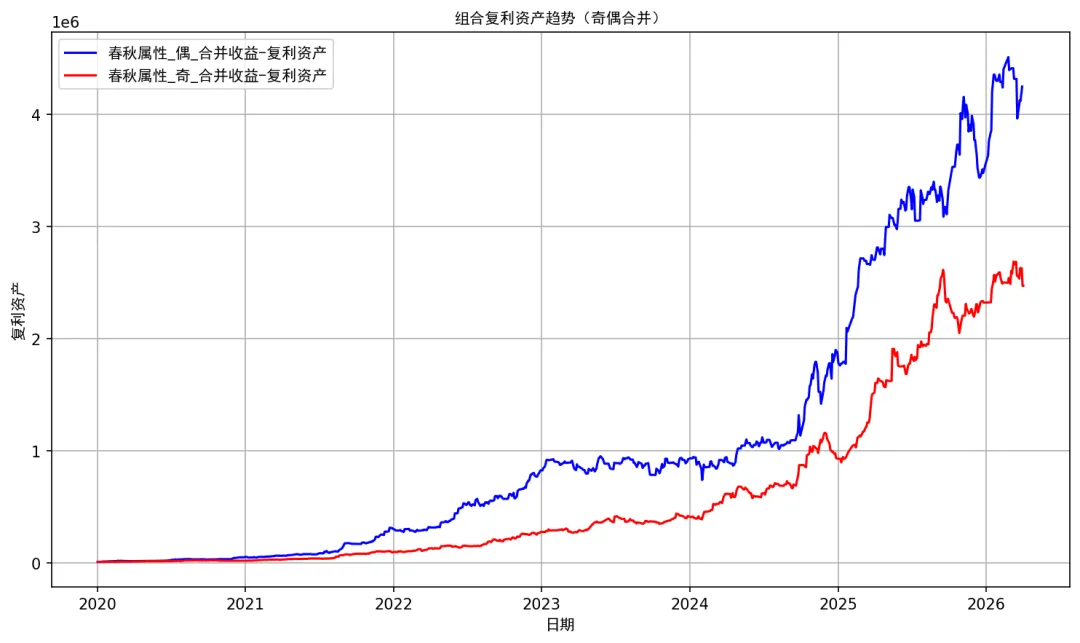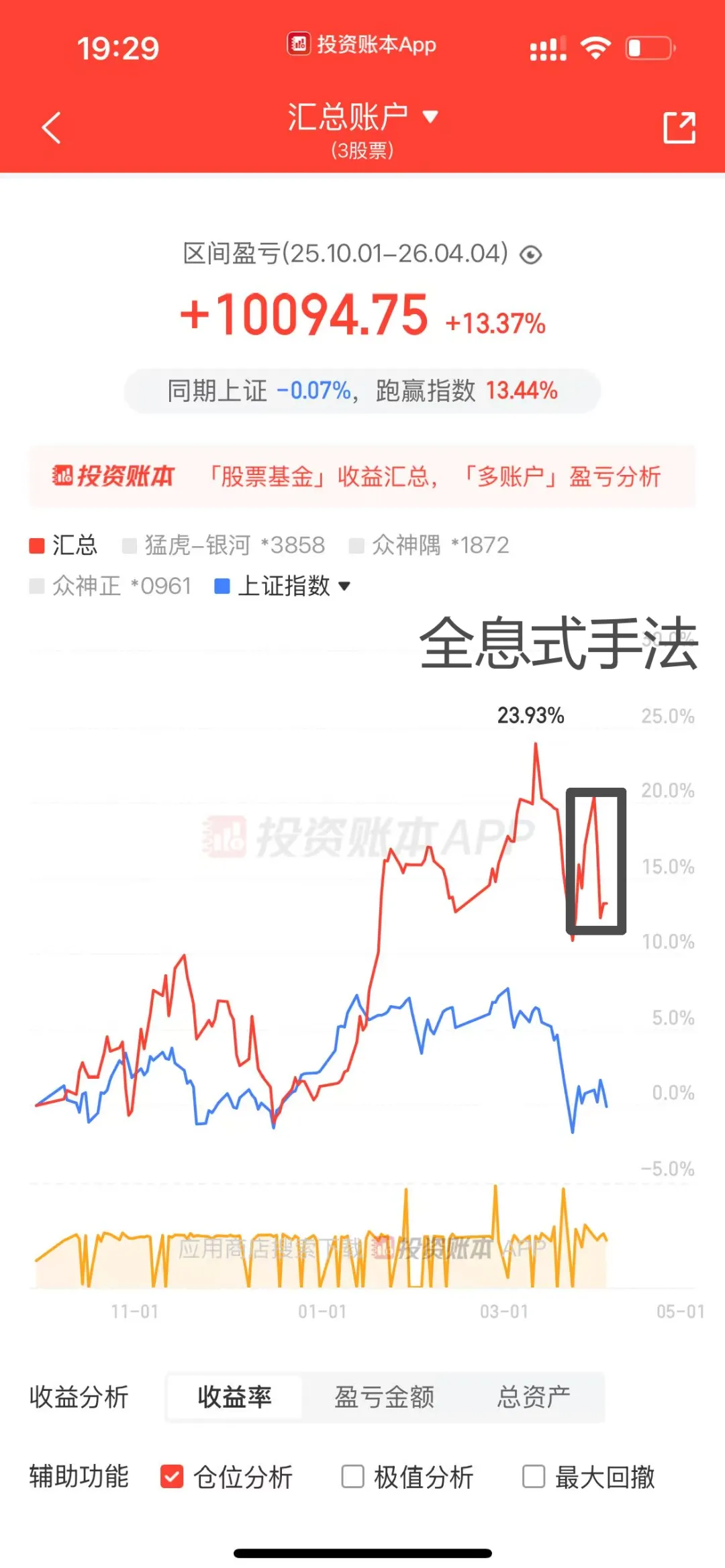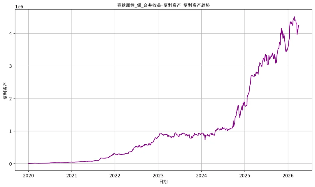 不知什么时候起,某一天,我看到镜子里的自己,眼神中带有一种杀气。有感到惊讶,但也很快知道原因,是炒股会让人生出杀气。我想路径是这样的:眼神清澈-->眼泪流干-->眼神杀气。不是每个股民都会如此,但我想,每一个想要走出来的大概都会如此。股市向来反人性,他虽然不是真正意义上的战场,但同样作为一种金钱"绞肉机",想要在里面活下来,是需要杀死一些东西,而在这个杀的过程,或者说重塑自己的过程中,眼神将自然而然变得不那么"善良"。因为A股零和机制奉行的是:不是你死,就是我活。一个真正想要从股市走出来的人,怎么理解?理解为:如果股市不成功,他的人生就已死了。我想一个成熟的交易者此时的心态应是,要么直接空仓,要么找到在熊市也能够盈利的交易模式。喷甲,骂乙,怪丙,怨丁,从交易的视角来说,如此这般的心性机制你将很难走出来,你可以选择尝试自己的微薄之力改变市场,但市场改变不代表你会更好。因为,历史会重演,行情会反复,A股总会有某种行情杀到你头皮发麻,市场也永远不会让每个人都赚钱。我想,我就是我口中这样的一个成熟交易者。因为菜逼如我,可是满满地经历了整整6年(20200101-20260404)隶属于自己的熊市。归零-充-归零-再充-归零-继续充......快乐如此循环往复。为避免误解,解释下:还有一个账户(最初的)承接到21.08.13,也是这样的趋势线,只不过被我注销了。我感受到的可是6年的熊市。不是一天两天,不是一两个月,是连续365*6=2190天的心如刀割,是生命历程6/100=6%时间的煎熬。强烈建议所有人在设计战法时,着重考虑在面对熊市时,该战法是否保持有效性。甚至,将此作为最基本的标准与要求。因为经历太多独属自己的熊市,我下意识如此做,我更关注熊市时我能否活下来,甚至比较好。A股牛熊一体,牛在熊内,熊在牛里。二者纠缠不清,难以分割,也不建议隔离开来。因为如果你认定现在一定是牛市,给到一种意识的定势,就非常不客观。相反,也将过于主观。应要处于一种千磨万击还坚劲,任尔东西南北风的心性境态之中。在2026.3.23-2026.2.27,完成交接,因为资金不够,暂停春秋式实盘,开始实盘全息式。因为春秋式是初恋,全息式是荷尔蒙。我会持续关注后续春秋式的趋势发展,直至某天条件允许再回到春秋式实盘。春秋式2020_众神2026:3.30-4.3