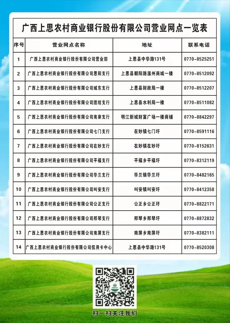 上思农商行从未与任何贷款中介合作,办理贷款从不收取中介费、服务费、介绍费、手续费等任何费用,请广大客户互相转告,避免上当受骗。