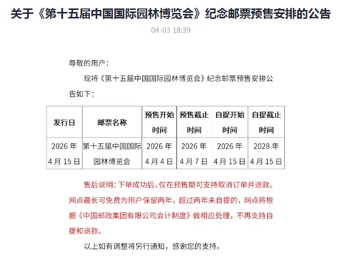 4月15日,《第十五届中国国际园林博览会》纪念邮票正式发行,邀您以邮为媒,提前赴约这场园林盛会,收藏方寸间的山海诗意与园博惊喜。届时,一枚小小的邮票,将带着温州的山海之美、园博之韵,走向千家万户,让更多人读懂园博、爱上园林、向往温州,让第十五届园博会的精彩在方寸之间永远流传。