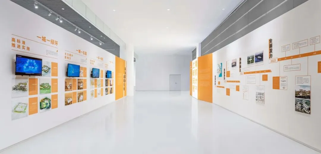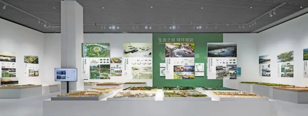 “生态之城,绿环熠彩”单元主要展示2023年五个新城绿环启动段实施方案和“大师园和云桥驿站”的部分优秀作品。五个新城所在区政府(管委会)邀请国内外25位设计大师,通过协同联创的方式打造“大师园及云桥驿站”系列作品,围绕“整田、育林、理水、塑形、配套服务、公共艺术”等方面进行详细方案设计,塑造新城绿色发展新典范。
