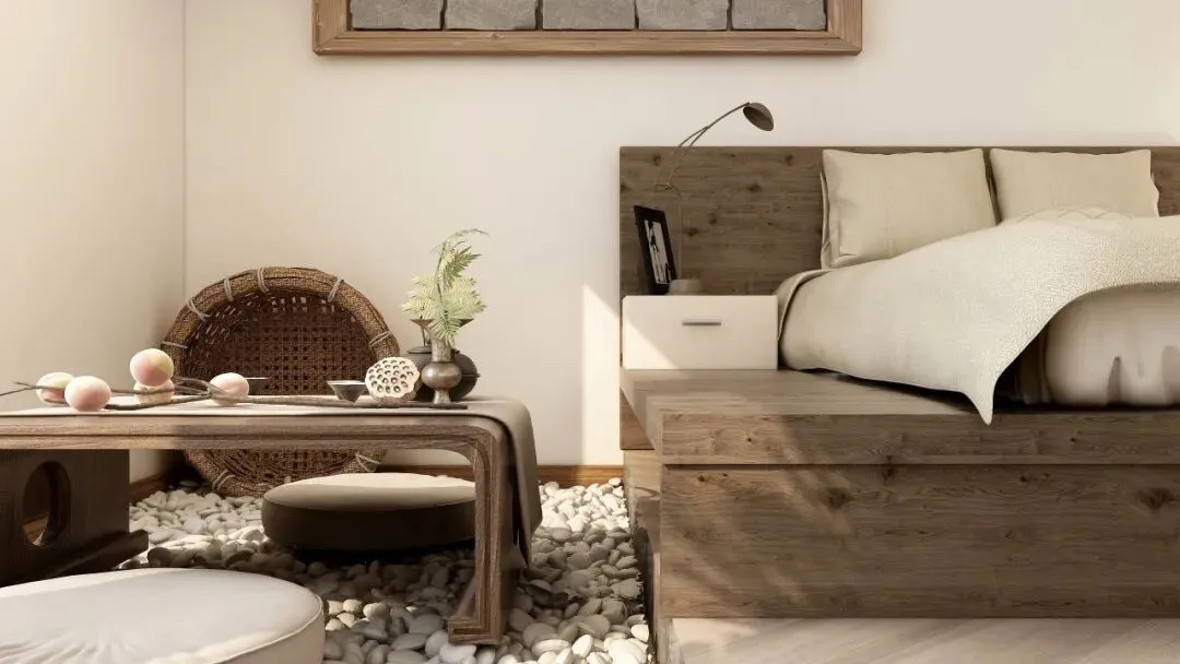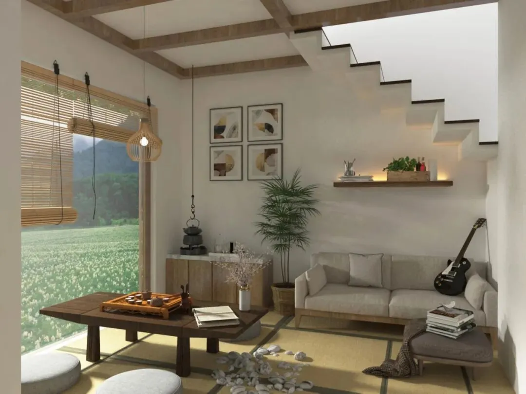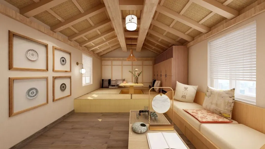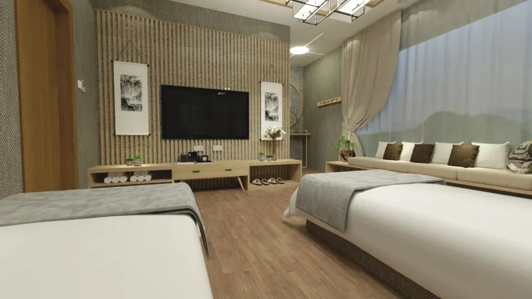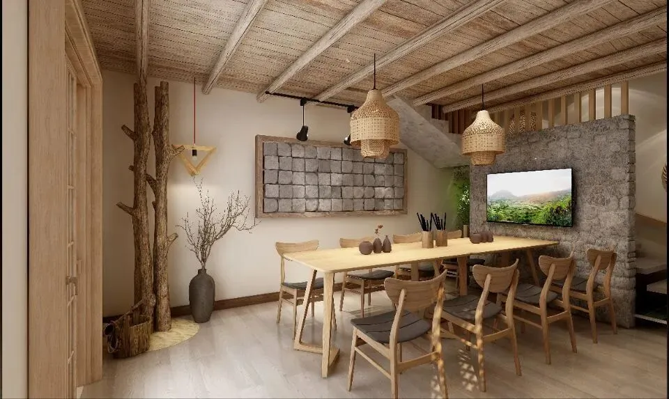 文字说明:项目整体采用将自然景观引入室内的设计手法方式,运用具有自然古朴气息的物件构成民宿风格。