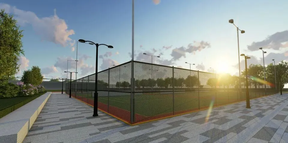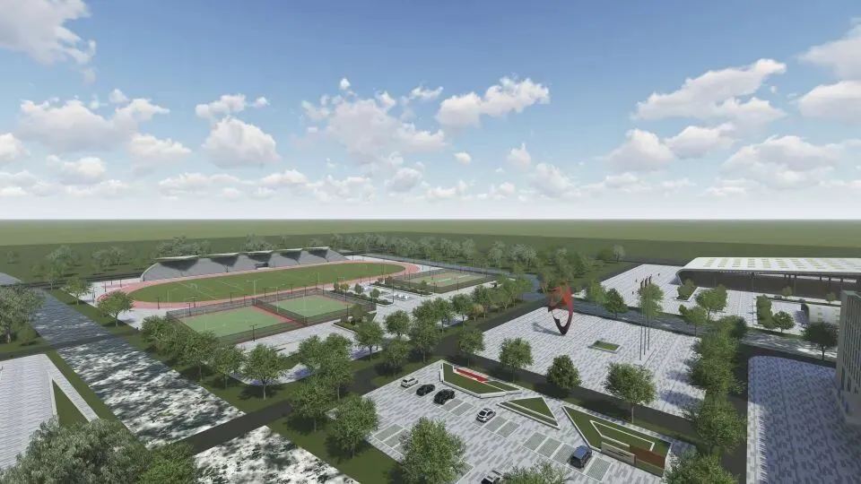 文字说明:此体育广场以生态环保、创新、生动为主要的设计理念,倡导多元化的运动休闲模式,做到人与自然和谐共生。