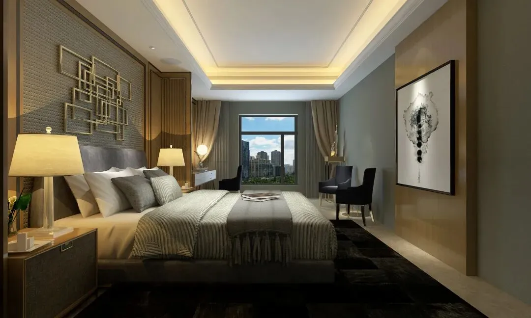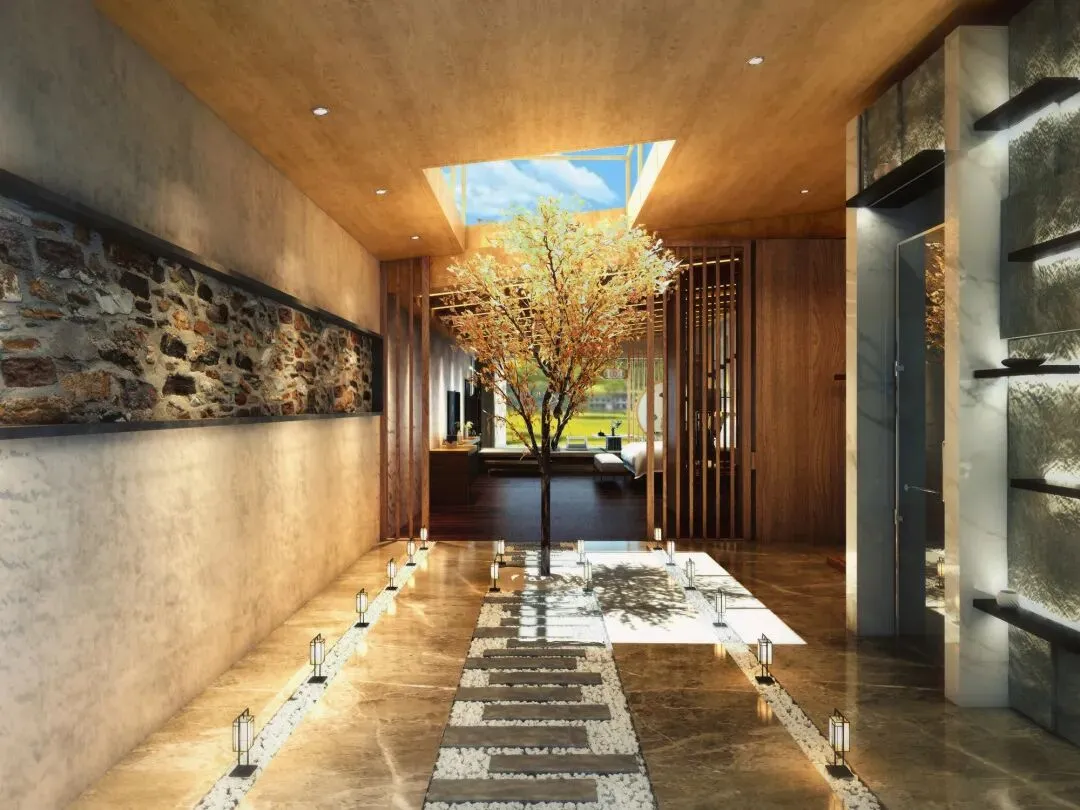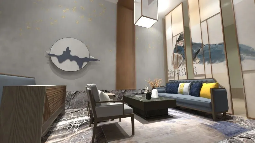 文字说明:新中式酒店设计采取简洁硬朗的线条和中国传统的对称讲究风格,塑造极简的设计风格,通过中式风格的体现了东方文化的魅力。以字画、风景、屏风、牌匾、陶瓷等各种细节上体现出中国文化的典雅大气。对于新中式酒店来言,更加可以吸引世界各地的旅客给他们带来更直观的中式古典的体验与感受。