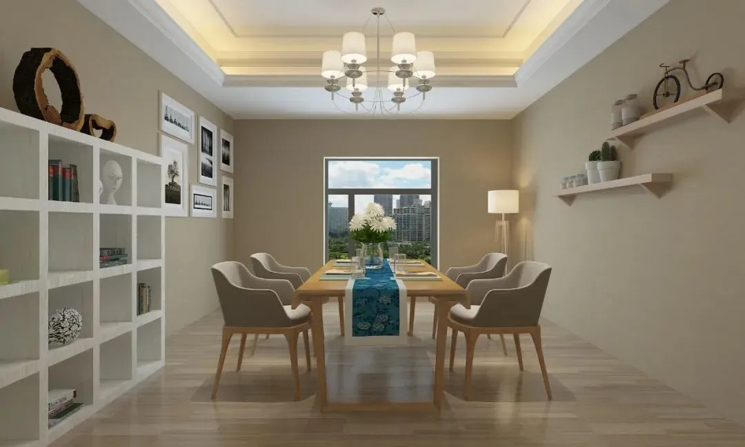 文字说明:设计中将人与自然、建筑之间有机结合,营造轻松舒适的室内空间,让消费者在简洁明快的空间里感受到设计师为其营造的自在温馨的氛围。