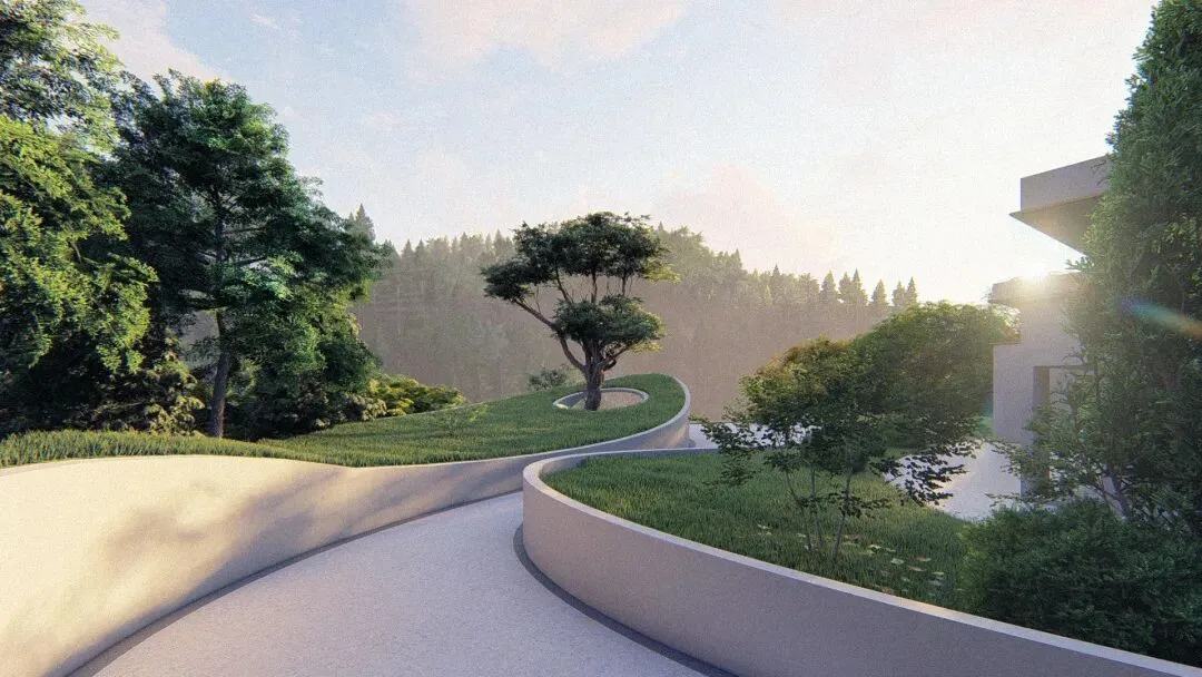 文字说明:该项目在乡村景观规划的大背景下打造都市缓释空间,在城市高压环境下能有一个可以进行自我对话的精神空间。