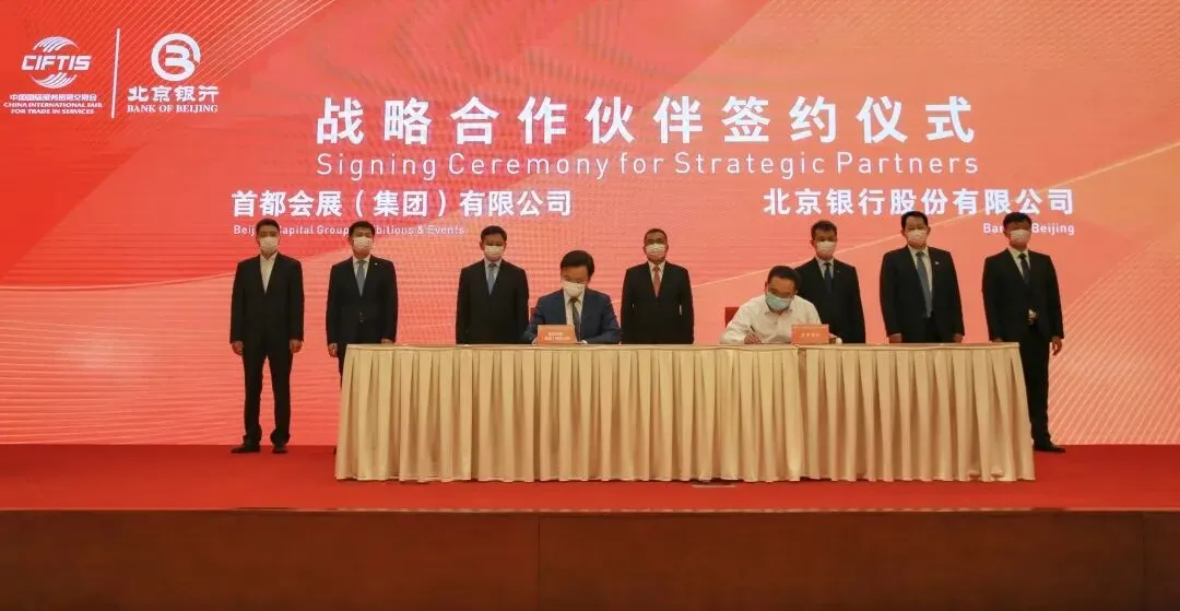 8月27日,北京银行与中国国际服务贸易交易会(以下简称“服贸会”)在国家会议中心签署战略合作协议,北京银行成为服贸会的战略合作伙伴,将为服贸会提供全方位的支持,携手打造全球最有影响力的服务贸易国际一流展会,助力深化国际服务贸易交流合作。