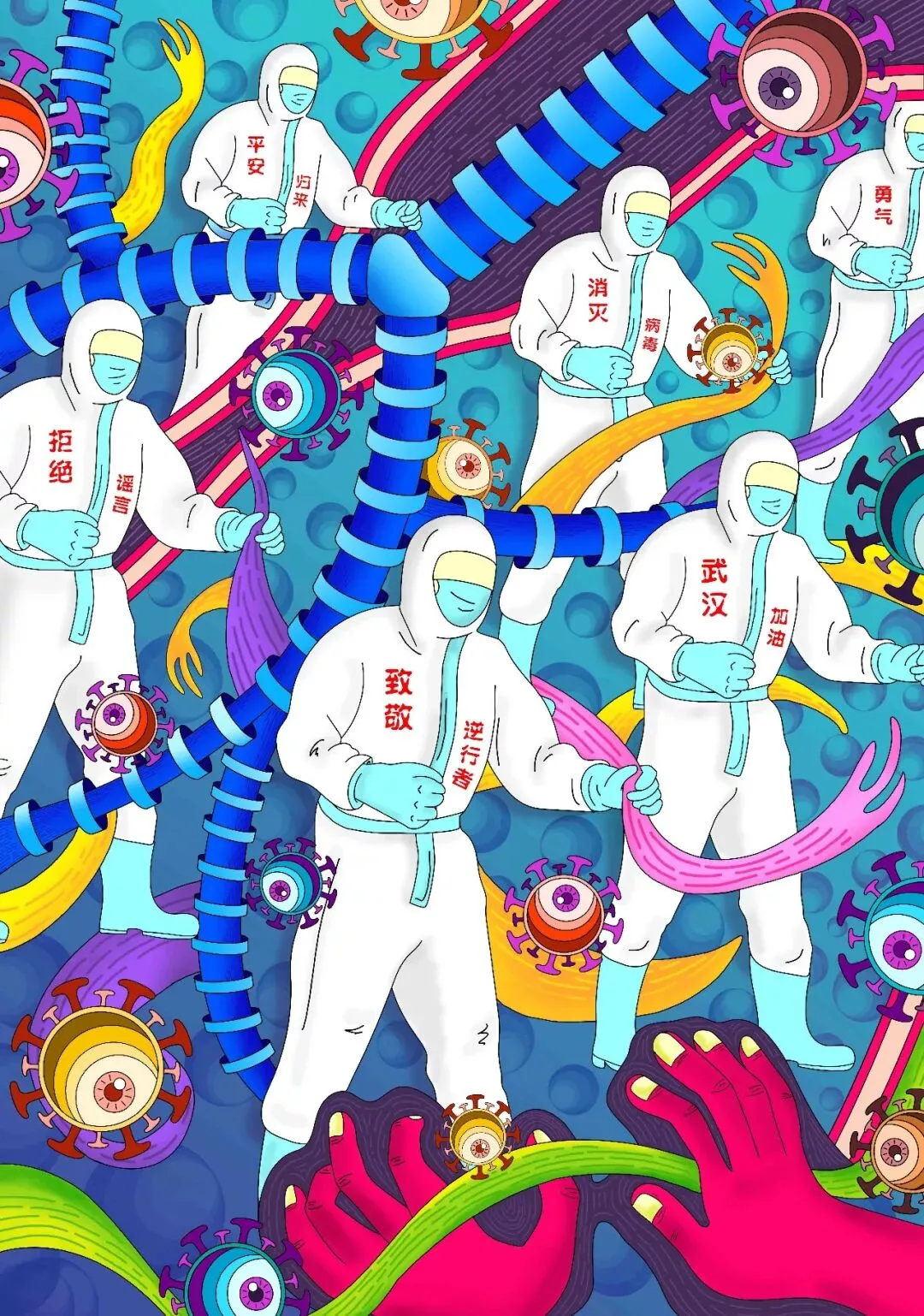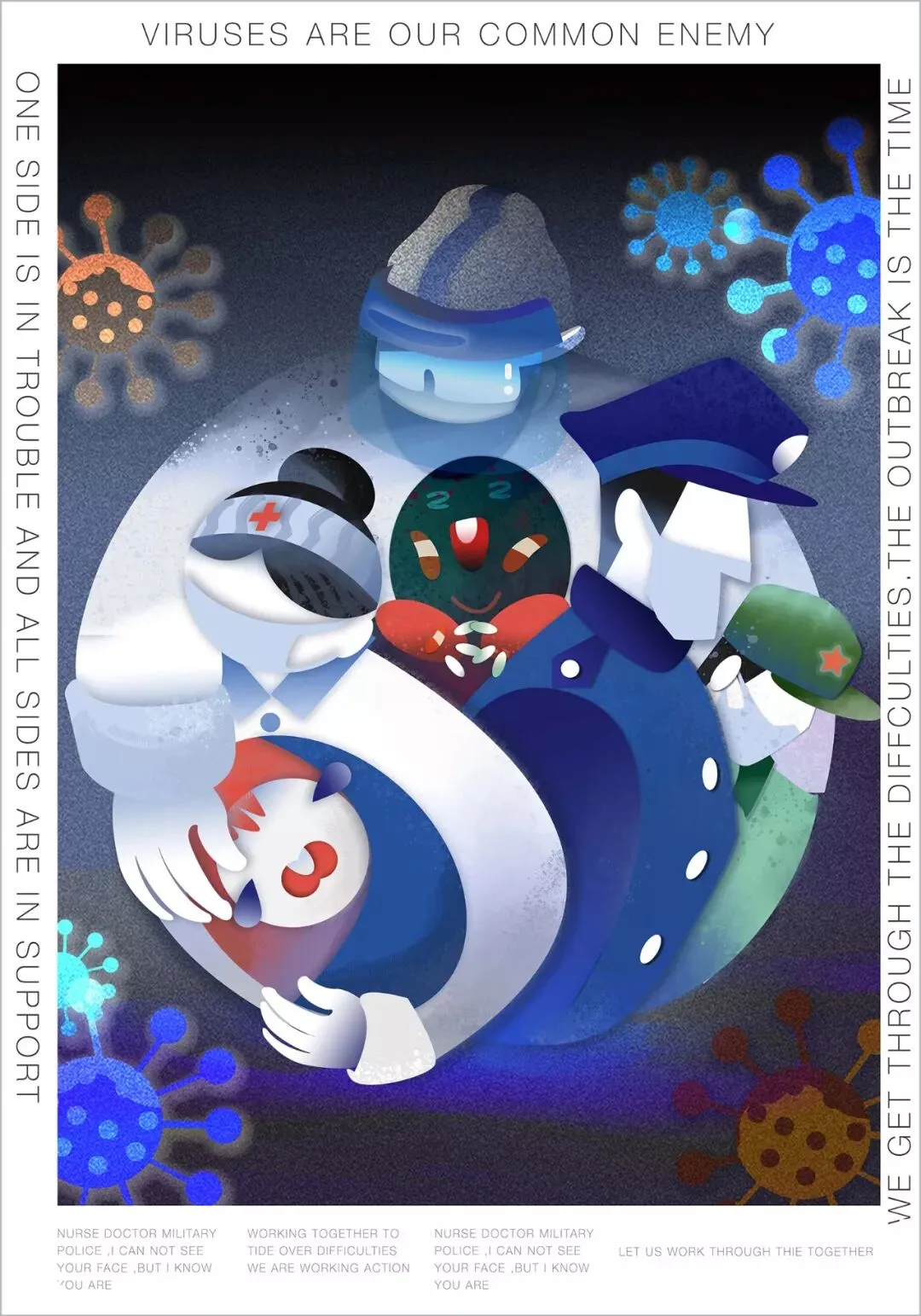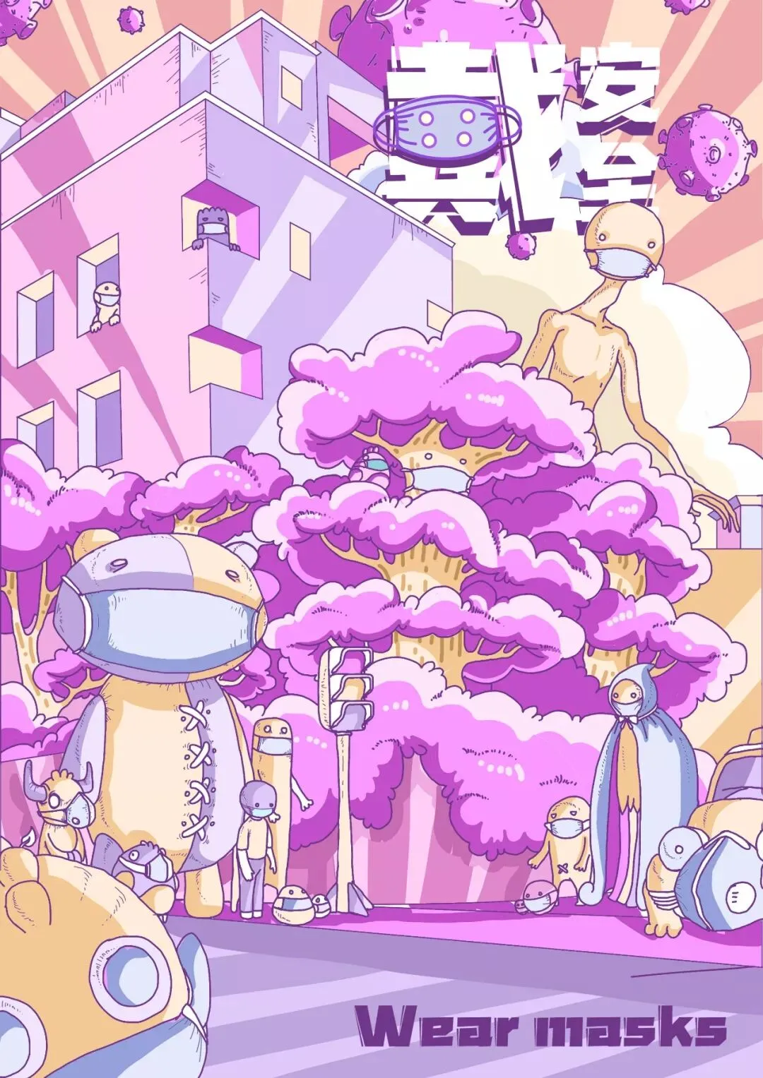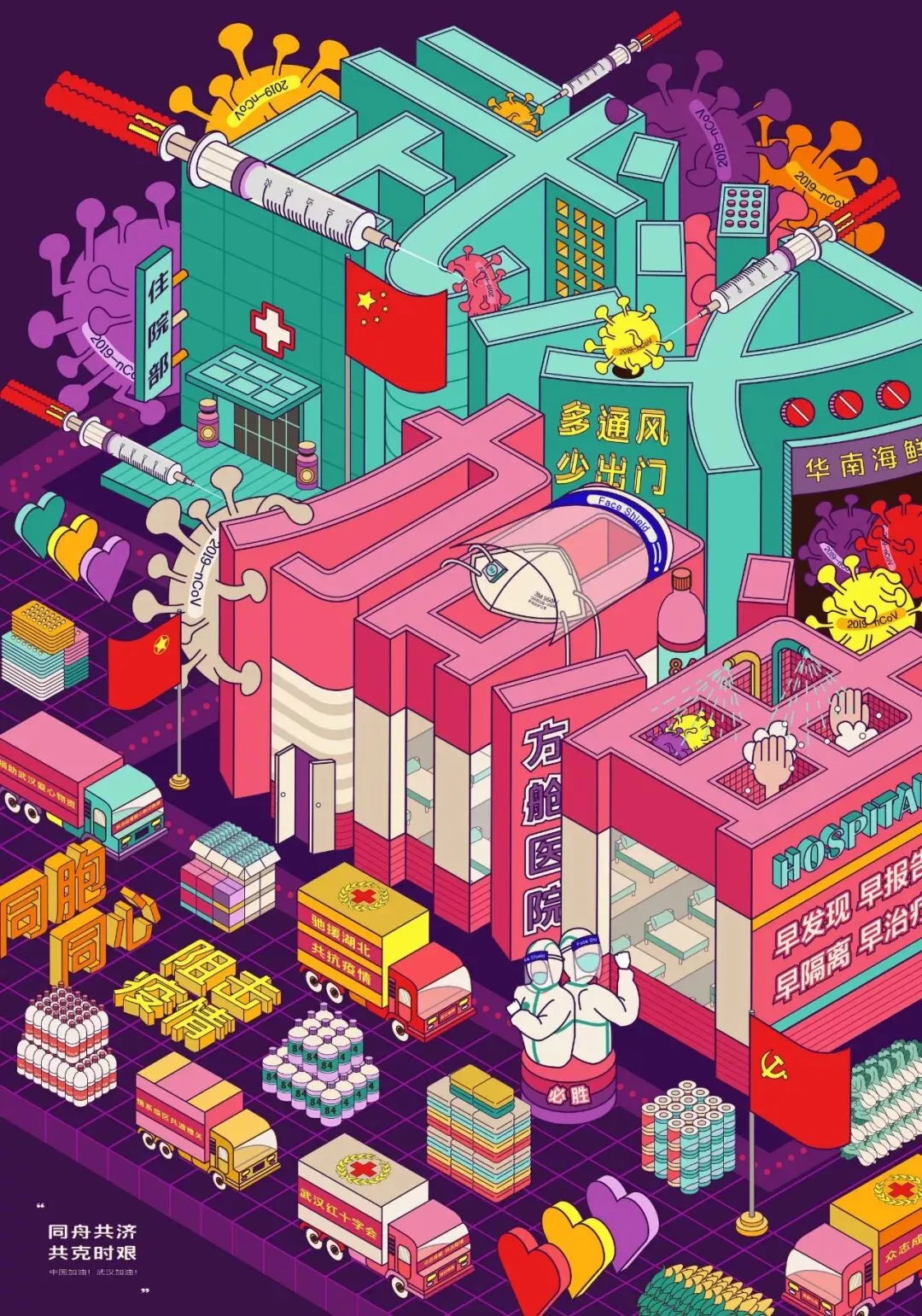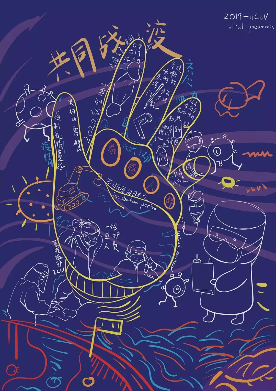 围绕2020年初中国武汉“新型冠状病毒”疫情公共卫生事件创作。